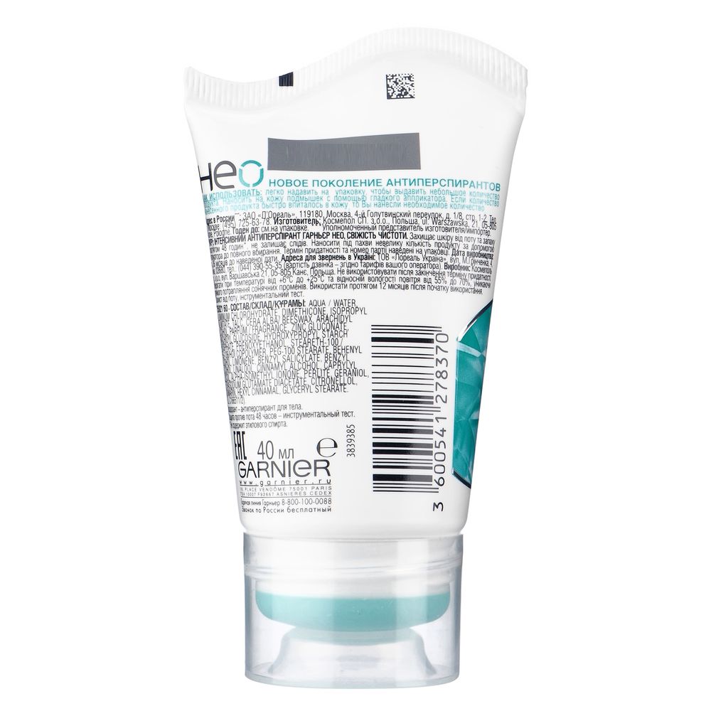 Garnier Дезодорант-антиперспирант "Нео, Свежесть чистоты", без спирта, сухой крем, защита 48 часов, невидимый, женский, 40 мл