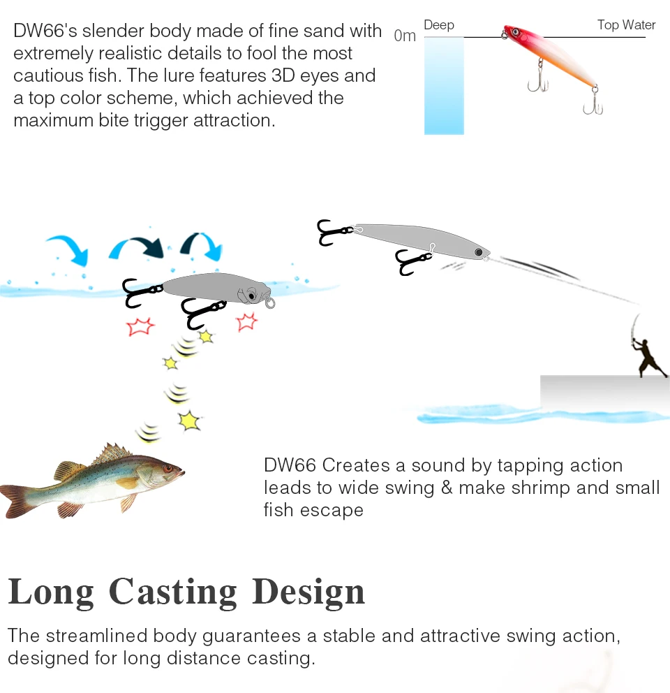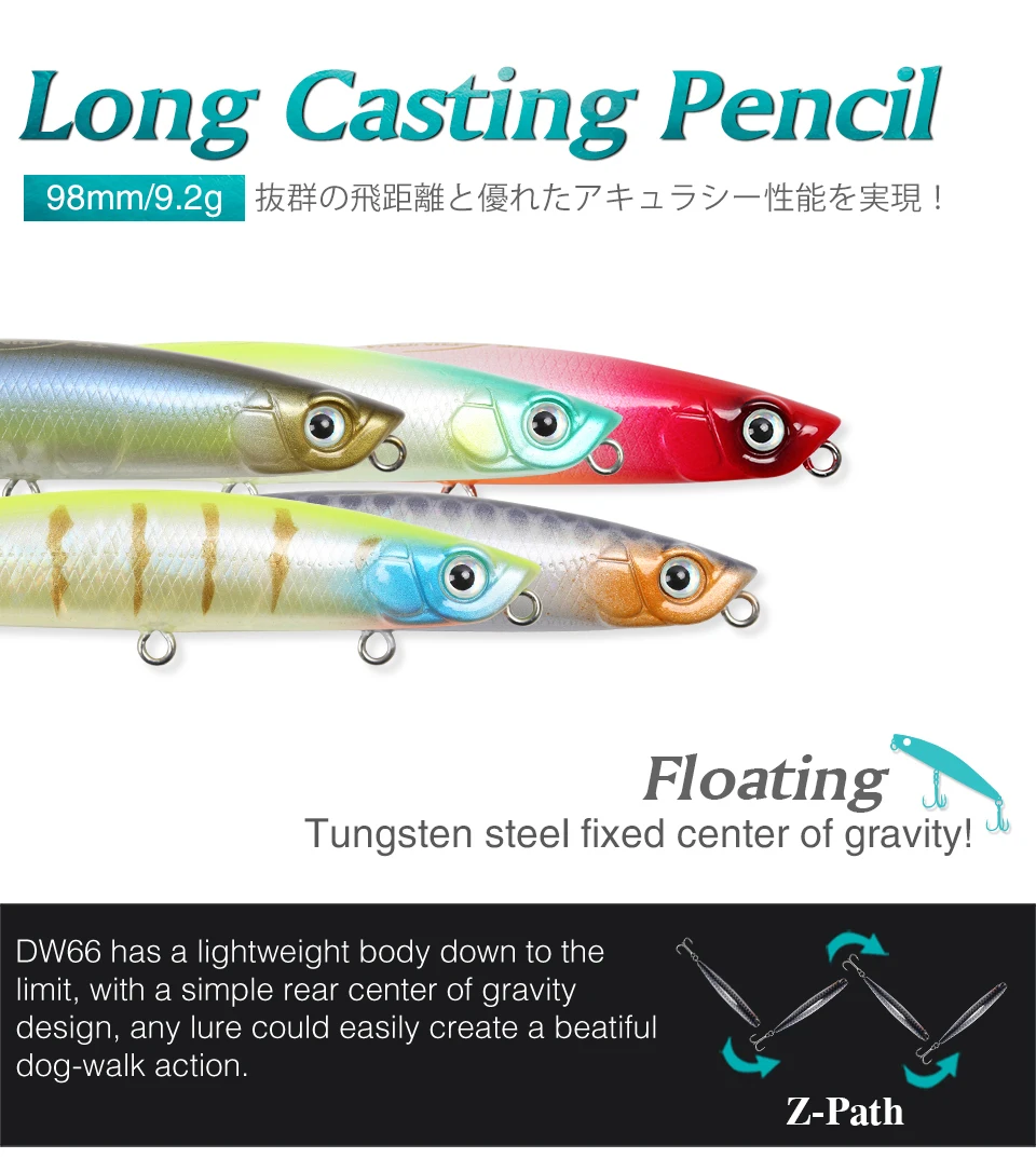 TSURINOYA рыболовные приманки плавающий карандаш жесткая Рыболовная Приманка DW66 98 мм 9,2 г Высокое качество тройной крючок карандаш жесткая приманка-воблер чувствительный морской окунь приманка