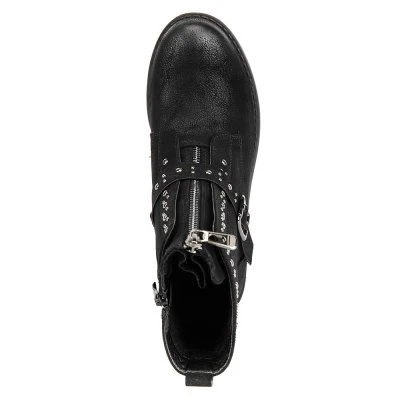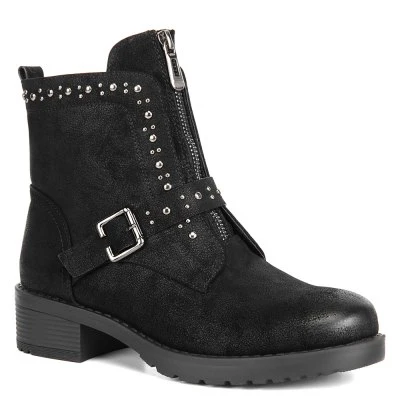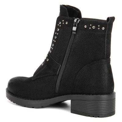 Женские зимние ботинки из искусственной кожи. Сбоку модель дополняет функциональная молния. Благодаря удобной колодке и невысокому каблуку ноги в этой обуви не будут уставать на протяжении всего дня. Модель чёрного цвета с округлым мыском