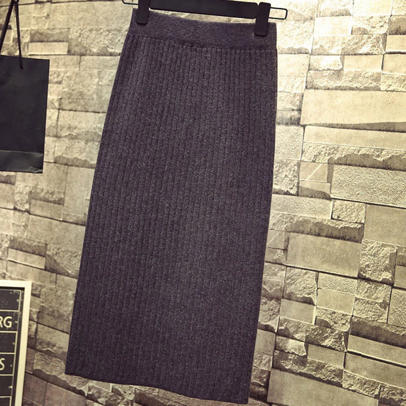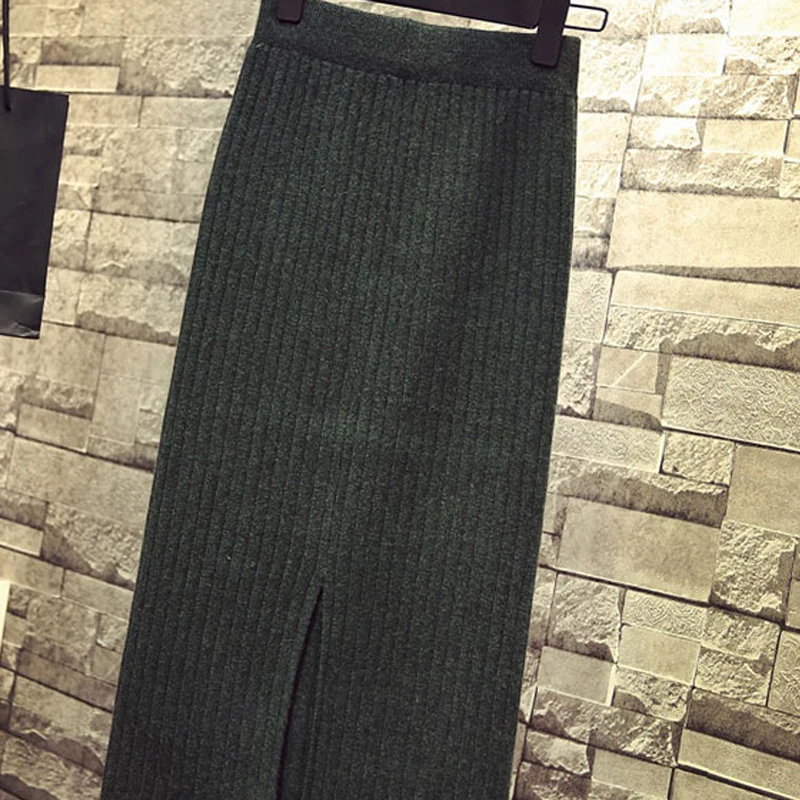 Женская облегающая элегантная юбка-карандаш миди с разрезом сзади на осень и зиму, повседневная трикотажная юбка с высокой талией, женские юбки s Jupe Femme Faldas