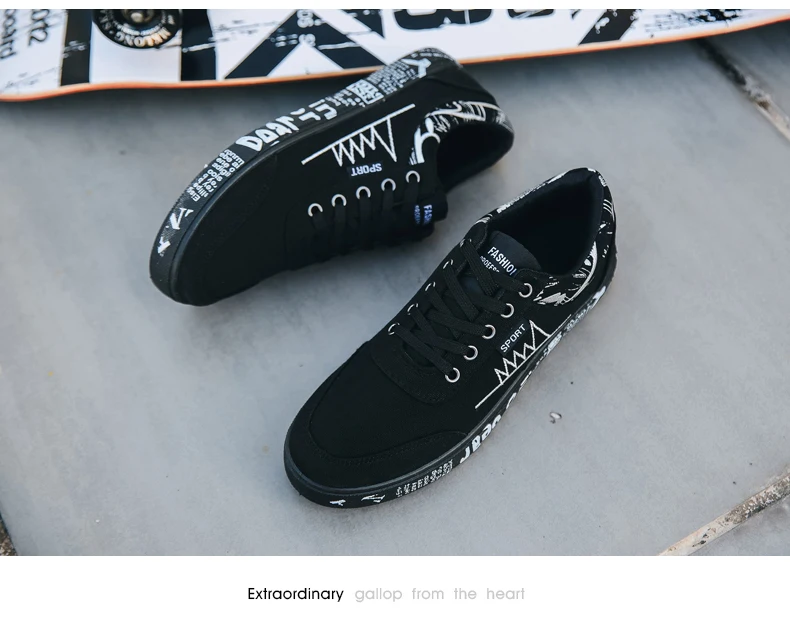 Low-Cut Casua Graffiti Shoes 2019 New Fashion Flat Denim Canvas Shoes For Men Lace-up Men Shoes Sneakers Breathable Casual Shoes