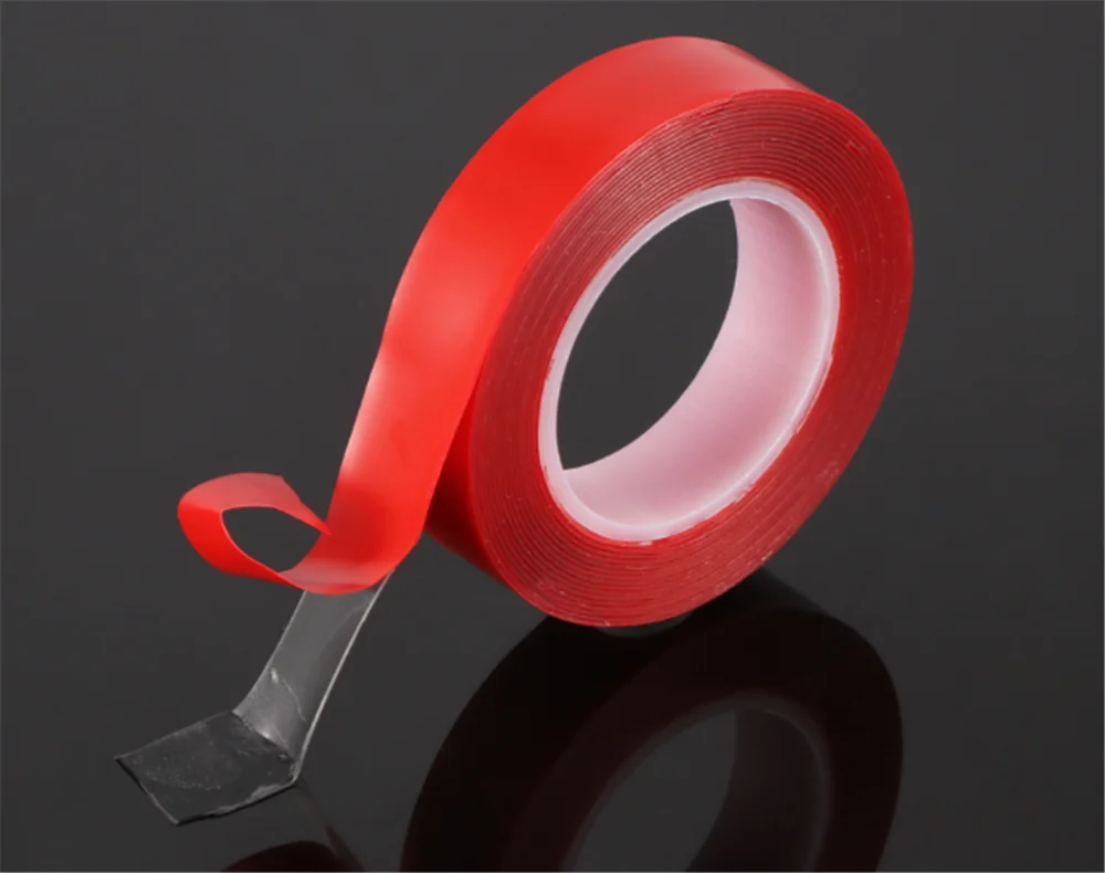 Двусторонняя клейкая подложка из чистой резины, изготовленная из прозрачной акриловой двусторонней клейкой ленты, цвет ленты прозрачный, с хорошей стабильностью размеров, термостойкостью, химической стабильностью, хорошая начальная вязка и хорошая адгезия, легкая высечка имеет хорошую адгезию к стеклу; водоотталкивающая способность не морщится при высокой влажности; Он обеспечивает идеальную обработку и легкую высечку и устойчивость к растворению.