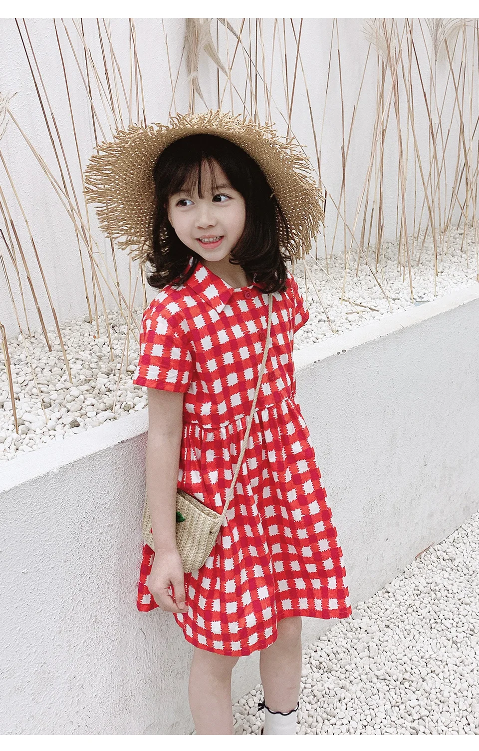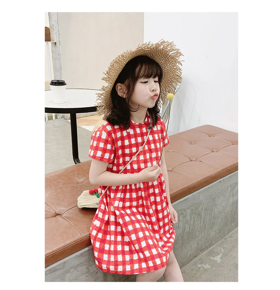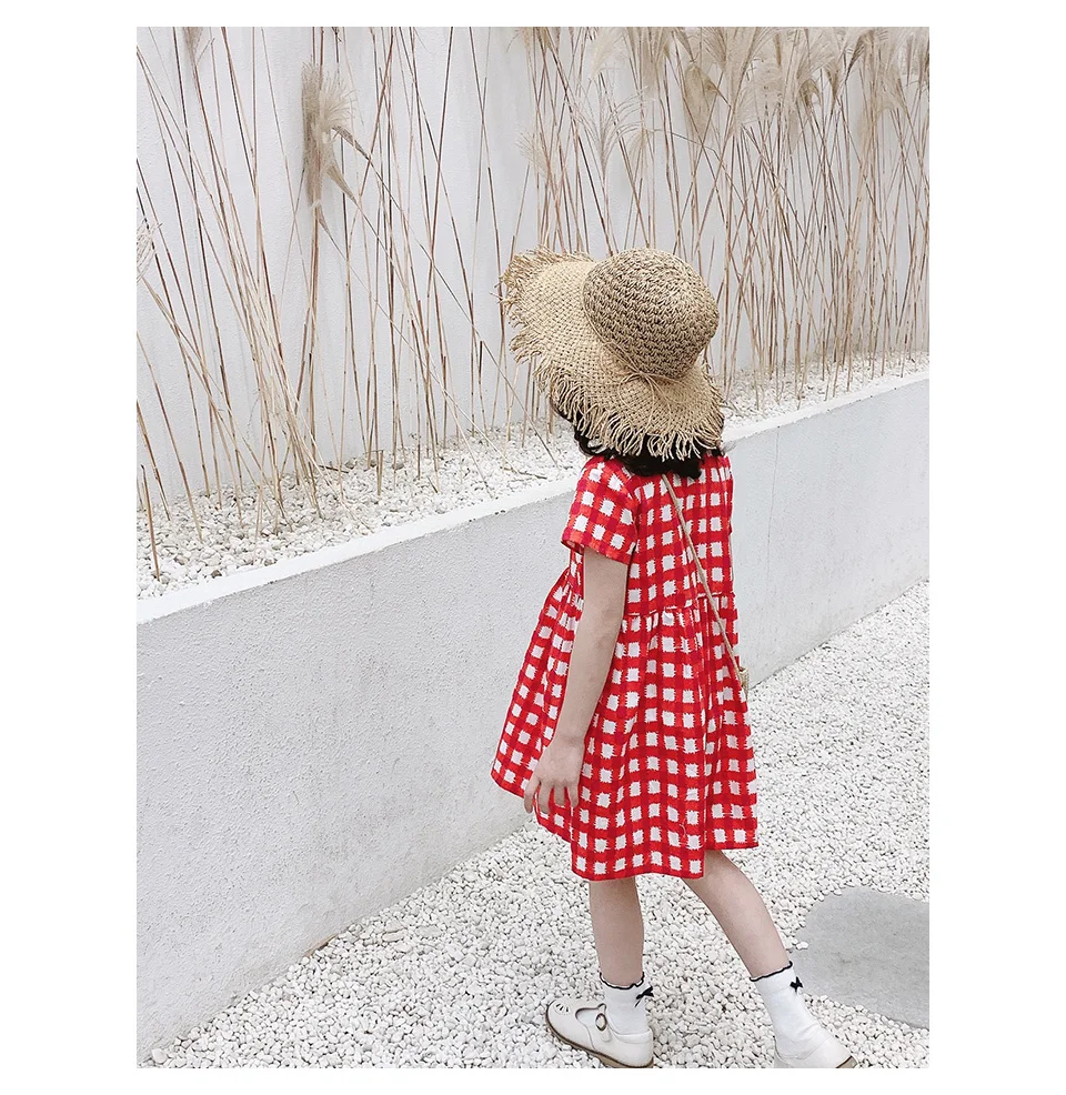 Клетчатое платье для маленьких девочек изготовлено из тонкой хлопковой ткани, которая удобна и воздухопроницаема весной и летом, не видя