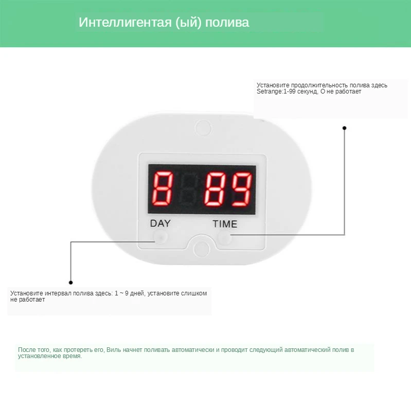 Эта умная поливочная машина может разумно установить интервал времени полива от 1-9 дней и время полива от 1-99 С. После установки он начнет поливать автоматически и проводит следующий автоматический полив в установленное время.