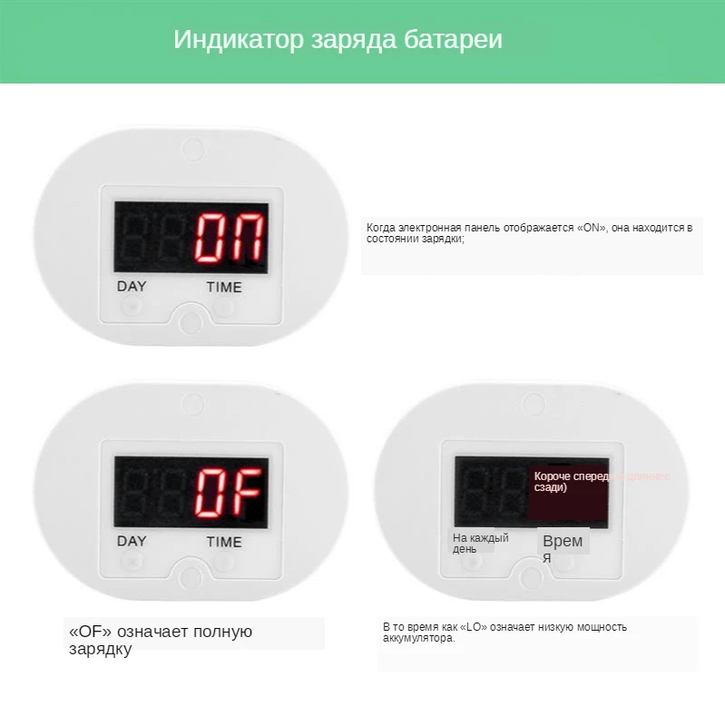 Когда электронная панель отображается «ON», она находится в состоянии зарядки; «OF» означает полную зарядку, в то время как «LO» означает низкую мощность аккумулятора.