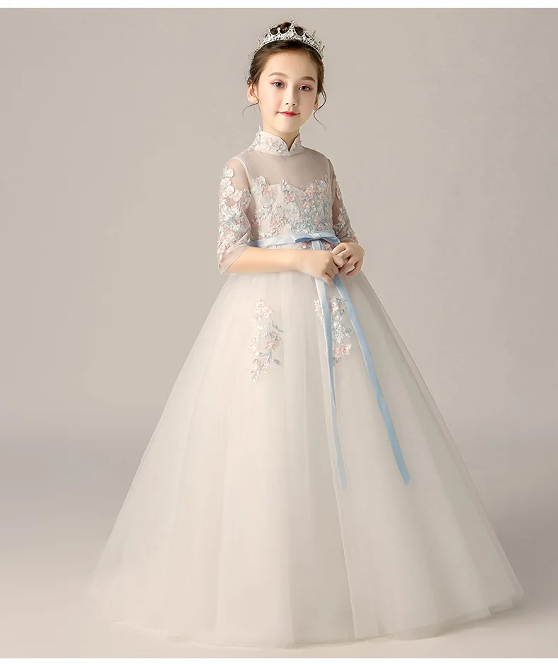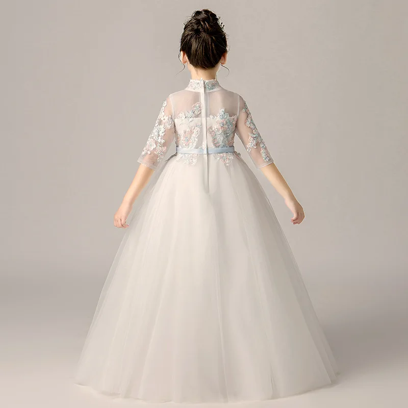 Женское вечернее платье с длинным рукавом белое в мусульманском стиле высоким