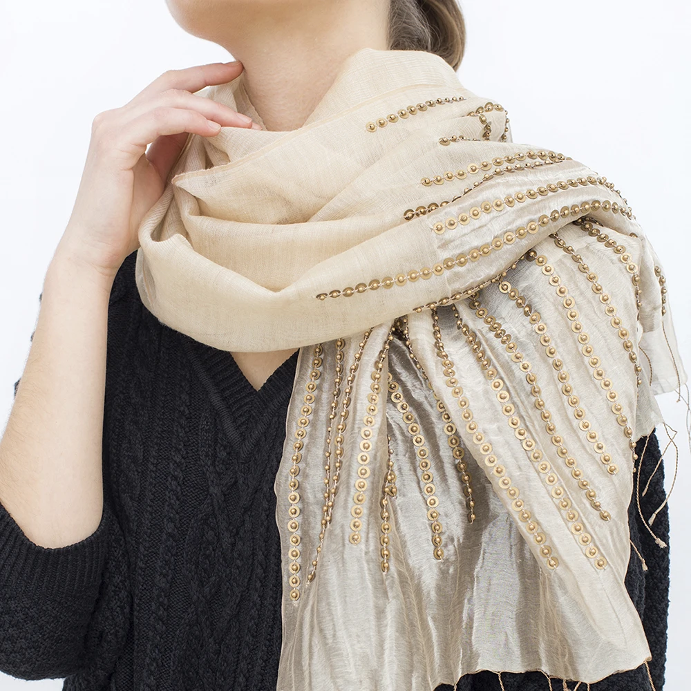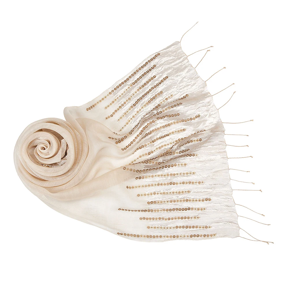 Вечерний палантин торговой марки ELEGANZZA. Состав: 70% шелк, 30% металлизированная нить. Тип подгибки: фабричная закрепка, кисти. Размер: 58х180 см.