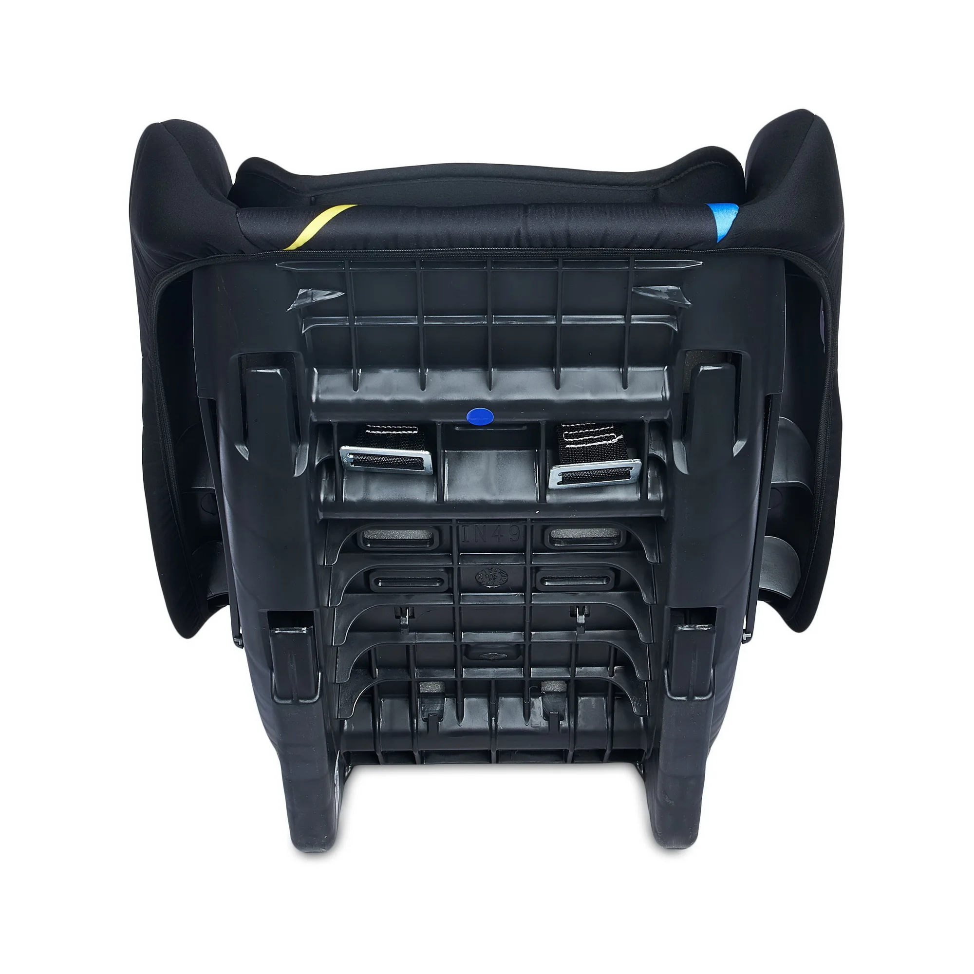 Способ крепления кресла предусматривает использование исключительно 3-точечных ремней автомобиля. Начиная с веса ребенка в 15 кг 5-точечные ремни автокресла демонтируются и ребенок пристегивается штатным ремнем автомобиля вместе с автокреслом. Все тканевые элементы обивки кресла являются съемными и могут быть сняты для стирки.