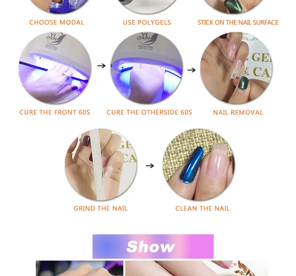 Быстрая информация Название бренда: YICHUN Место происхождения: Гуандун, Китай Название продукта: искусственные ногти Цвет: прозрачный Применение: для профессионального салона или домашнего использования. Особенности: 1. Подходит для наращивания ногтей с украшениями для дизайна ногтей/гелем для ногтей/акрилом/и т. д. 2. Можно добавить украшения для ногтей на ногти и создать свой собственный стиль и узор! Наш сервис: Мы являемся профессиональным производителем УФ-геля, можем поставлять OEM /ODM, услуги частных этикеток при заказе более 100 штук История бренда: Мы являемся профессиональным производителем продукции для дизайна ногтей, расположенным в Гуанчжоу, Китай. Мы ориентируемся на красоту ногтей. Мы являемся профессионалами в производстве лака для ногтей, акрилового порошка для ногтей, кисти для ногтей, украшения ногтей и других поставщиков ногтей Независимо от того, кто вы, Если у вас есть мечта управлять своим собственным бизнесом красоты ногтей, Затем Присоединяйтесь к нам, компания Yichun Гель-лак для ногтей, Мы поможем Вам воплотить ваши мечты, Мы поможем вам начать ваш бизнес красоты ногтей, Мы будем сопровождать вас, чтобы нарисовать вашу будущую жизнь цветами, Мы будем сопровождать вас для развития карьеры ногтей на всем пути, Затем растут вместе. Выберите нас, Выберите цвет карьеры, который вам нравится Выберите нас, Выберите стиль жизни, о котором вы мечтаете, Выберите нас, Совершите яркое и смелое путешествие в карьере красоты ногтей, Выберите нас, Воспользуйтесь шансом, чтобы показать свое превосходство, уверенность, независимости. Пожалуйста, свяжитесь со мной в Whatsapp или wechat :008618907570977