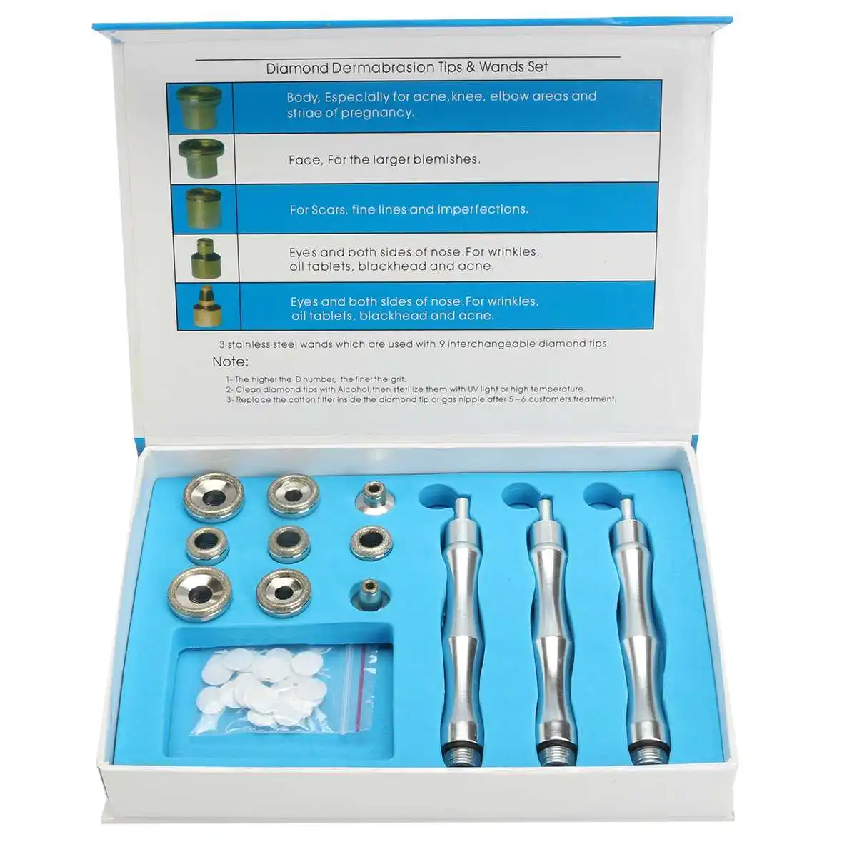 Алмазная микродермабразия Дермабразия для лица кислородная корка вакуумный спрей машина Особенность: Улучшает микроциркуляцию кожи Удаление следов от акне Улучшение кожи лица Уход за телом Описание: Размер продукта: 230*245*80 мм Посылка: 335*260*13 мм Размер устройства: 2717 г Входное напряжение: ЕС: 100-240 в, а, Гц Мощность: ЕС: 12 В = 4,0 А США: 12 В = 3,0 А Аксессуары: Устройство * 1 Вакуумная трубка из ПВХ * 2 Ручка для дермабразии * 3 Головка дермабразии * 9 Распылители * 1 Кабель устройства * 1 Распылитель пистолет упаковочный чехол * 1 Отшелушивающая головка и губчатый упаковочный чехол * 1 Руководство по использованию: 1. Пожалуйста, поместите это устройство стабильно в сухую рабочую окружность, а также убедитесь, что отверстия для тепловыделения могут проветривать тепло без блокировки. 2. Правильно Соедините Пистолеты для распыления, отшелушивающую головку и ручку для отшелушивания. 3. Подключите устройство к источнику питания и подключите устройство. 4. Нажмите красную кнопку на задней панели устройства. 5. После 30 минут непрерывной работы останавливайте устройство на 20-30 минут перед повторным использованием. 6. Установите рабочую интенсивность устройства до нужной степени в соответствии с условиями клиента. 7. После использования Выключите устройство и отключите устройство. Внимание: 1. Это устройство относится к изощренной категории, которая требует дополнительного обслуживания, чтобы продлить срок службы. 2. Переместите это устройство с осторожностью в случае любых повреждений устройства. 3. После использования устройства, пожалуйста, очистите это устройство осторожно и сохраните его должным образом при следующем использовании. 4. Людям с ранами на коже рекомендуется не использовать. 5. Держите лицо увлажненным и вдали от сильного солнечного света. 6. Не мыть лицо горячей водой (выше 30 ℃)Через три дня после лечения. Примечание: Допускается погрешность в 1-3 см из-за ручного измерения. Перед заказом убедитесь, что вы не возражаете. Пожалуйста, поймите, что цвета могут иметь Хроматическую аберрацию из-за разного размещения изображений. Если у вас есть какие-либо вопросы, свяжитесь с нами. |