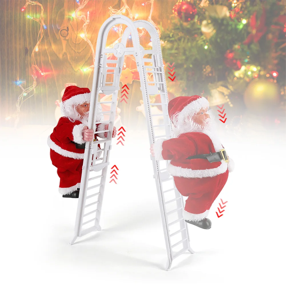 Игрушка Детская плюшевая с Санта Клаусом декоративная электрическая лестница