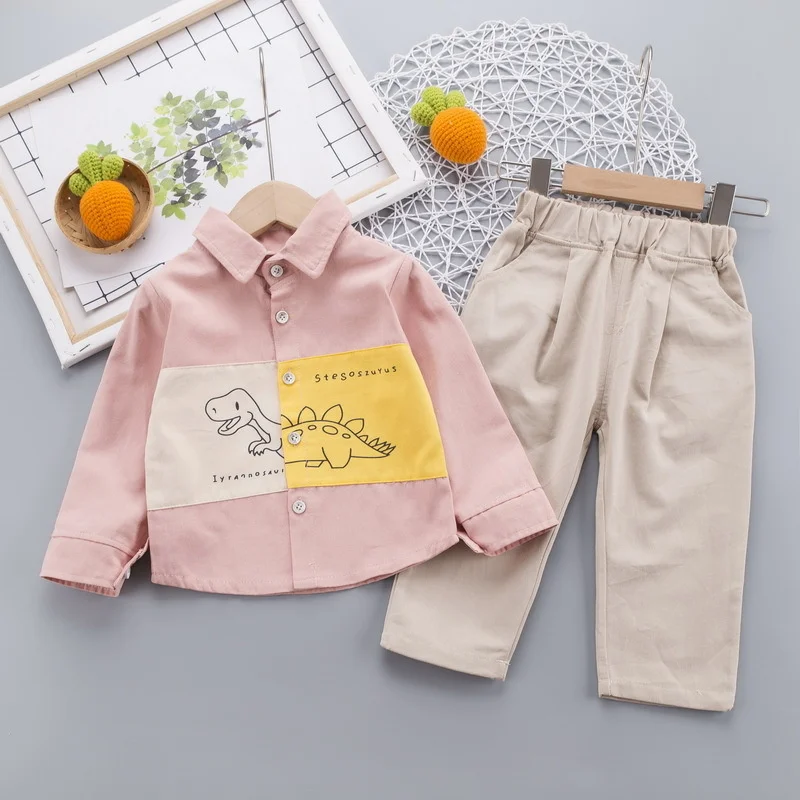 Новый весенне-осенний костюм для маленьких девочек детская хлопковая рубашка и штаны для мальчиков комплект из 2 предметов, повседневный костюм для малышей детские спортивные костюмы для малышей, От 0 до 4 лет