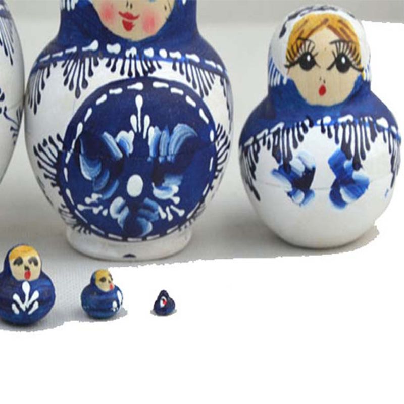 10pcs/set Painted Russian Matryoshka Blue and White Porcelain Pot-bellied Doll
