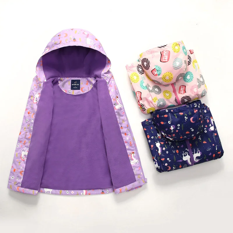 Куртка для девочек; Зимняя детская флисовая одежда с цветочным принтом; Пальто для девочек; Ветровка; Верхняя одежда