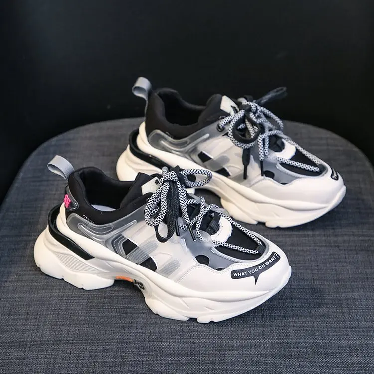 Повседневные женские кроссовки; Женская обувь на платформе; Модная классическая женская обувь на танкетке; Sapato Feminino; Женские кроссовки Подходящий сезон: осень-зима; Высота каблука: средний каблук (3-5 см); Узор: подходящая по цвету Форма Носка: круглый носок; Популярные элементы: Прошитые, кисточка, кожаная строчка, перекрестные ремешки, вырез, подходящие цвета, тотем, пятка из губчатой ткани, цветная строчка, фланец, водонепроницаемая платформа, металлический пол: Женский Стиль: Повседневный Материал подошвы: Резина Высота верхней части: средняя форма каблука: Губка Материал стельки: ПУ Цвет: черный, серый Размер: 35, 36, 37, 38, 39, 40, 41, 42, 43