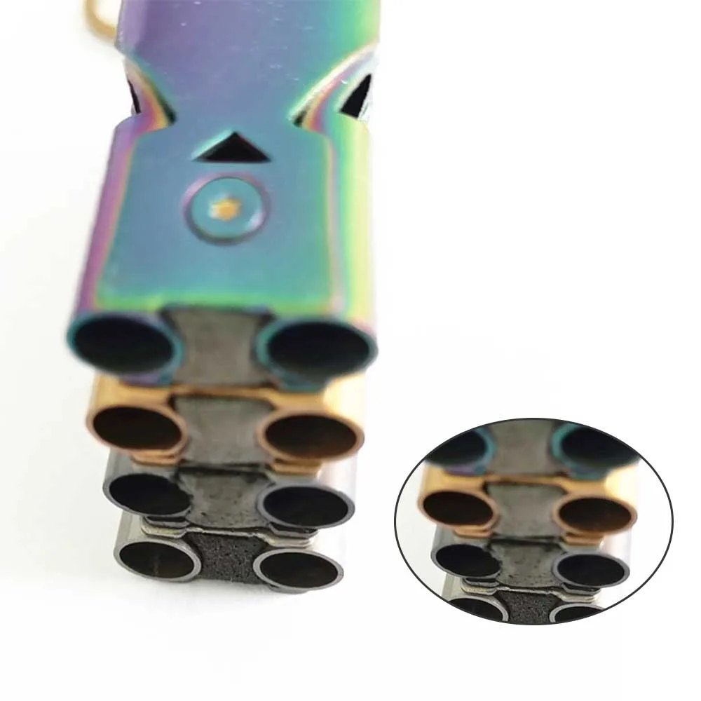 1. Название продукта: высокий децибел на открытом воздухе Спасательные аварийные свистки 2. Пищевой класс гигиены из нержавеющей стали 3. Полевой инструмент edc свисток 4. Размер: 58 мм * 18 мм 5. Цвет: темно-серый, черный Особенности: 1. Громкий, до 150 дБ, разложить дальше 2. Свисток Наклонный гладкий и evasive свисток отверстие 3. Используется для спортивных мероприятий, обратитесь за помощью, обучение домашних животных ec
