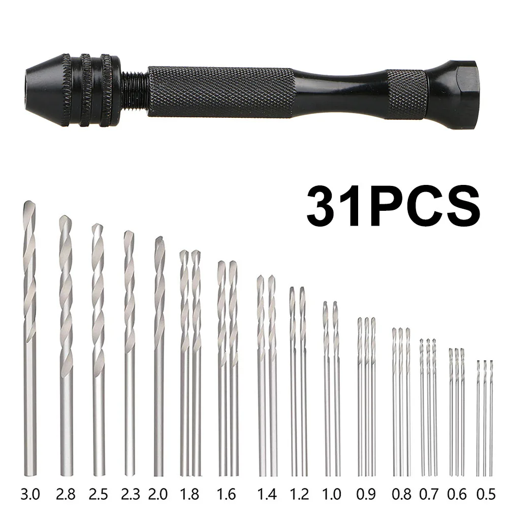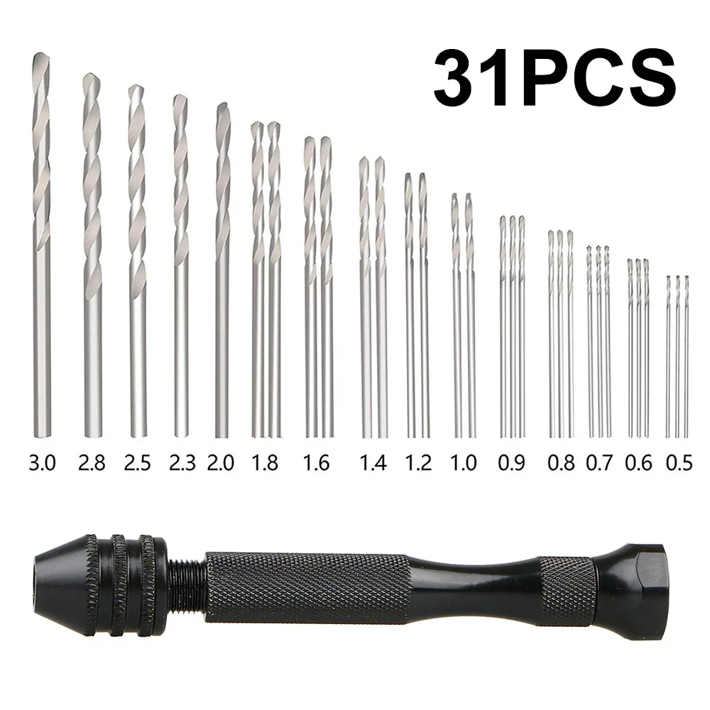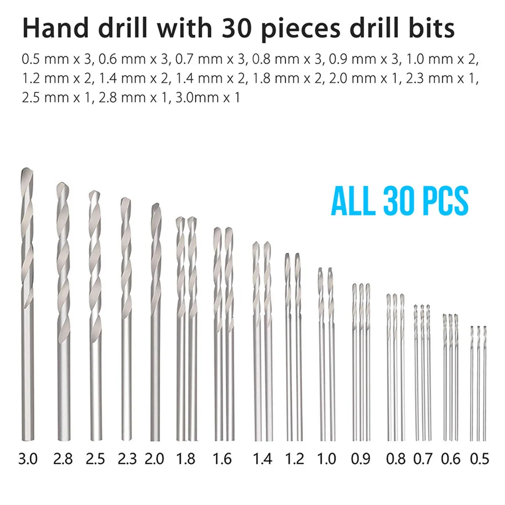 * Ручная дрель с 30 сверлами(Приблизительно): 0,5 мм x 3, 0,6 мм x 3, 0,7 мм x 3, 0,8 мм x 3, 0,9 мм x 3, 1,0 мм x 2, 1,2 мм x 2, 1,4 мм x 2, 1,4 мм x 2, 1,8 мм x 2, 2,0 мм x 1, 2,3 мм x 1, 2,5 мм x 1, 2,8 мм x 1, 3,0 мм x 1, все 30 шт.