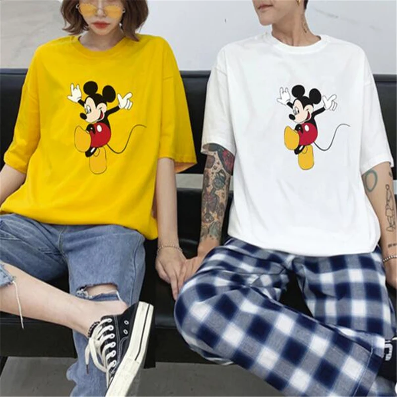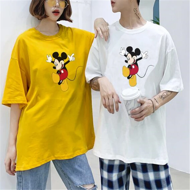 Disney летняя футболка с коротким рукавом с Микки Маусом для женщин и мужчин, короткие белые топы с круглым вырезом и героями мультфильмов, свободные футболки унисекс, одежда для пар JE