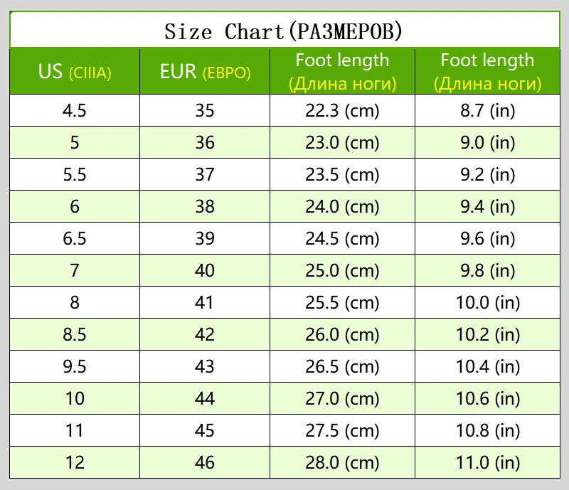 Tips: Choose one size bigger if you have a wide foot or high instep