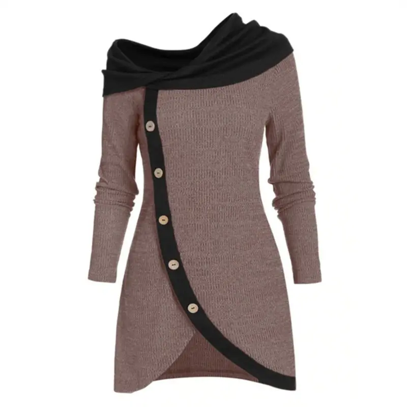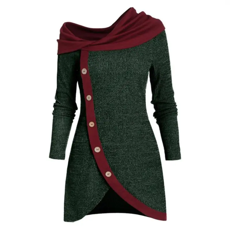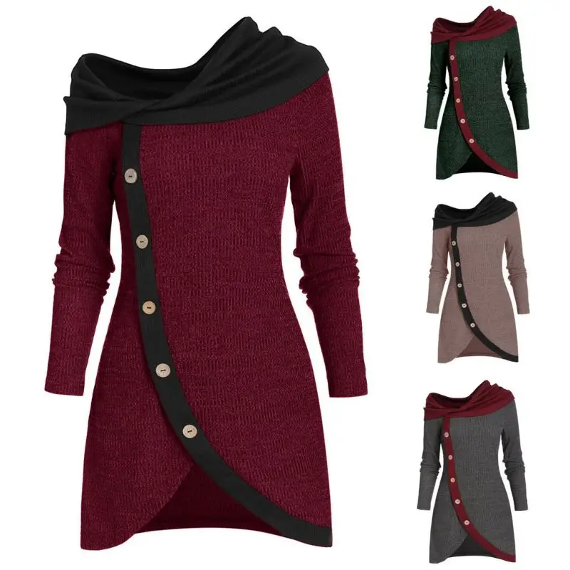 Asymmetric heap neck collar, long sleeve, five crossover oblique buckle decor, irregular hem, elegant and beautiful.