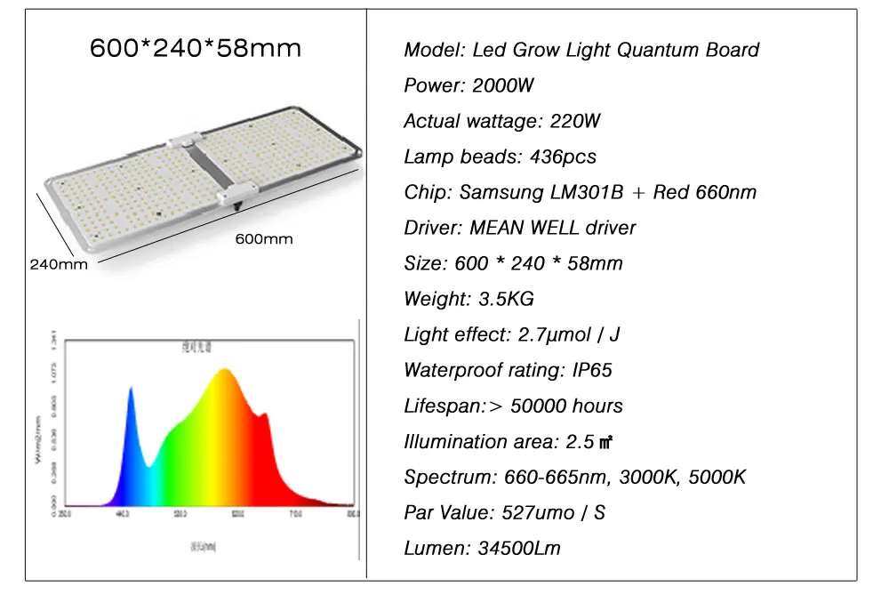 Светодиодный светильник для выращивания квантовой доски;