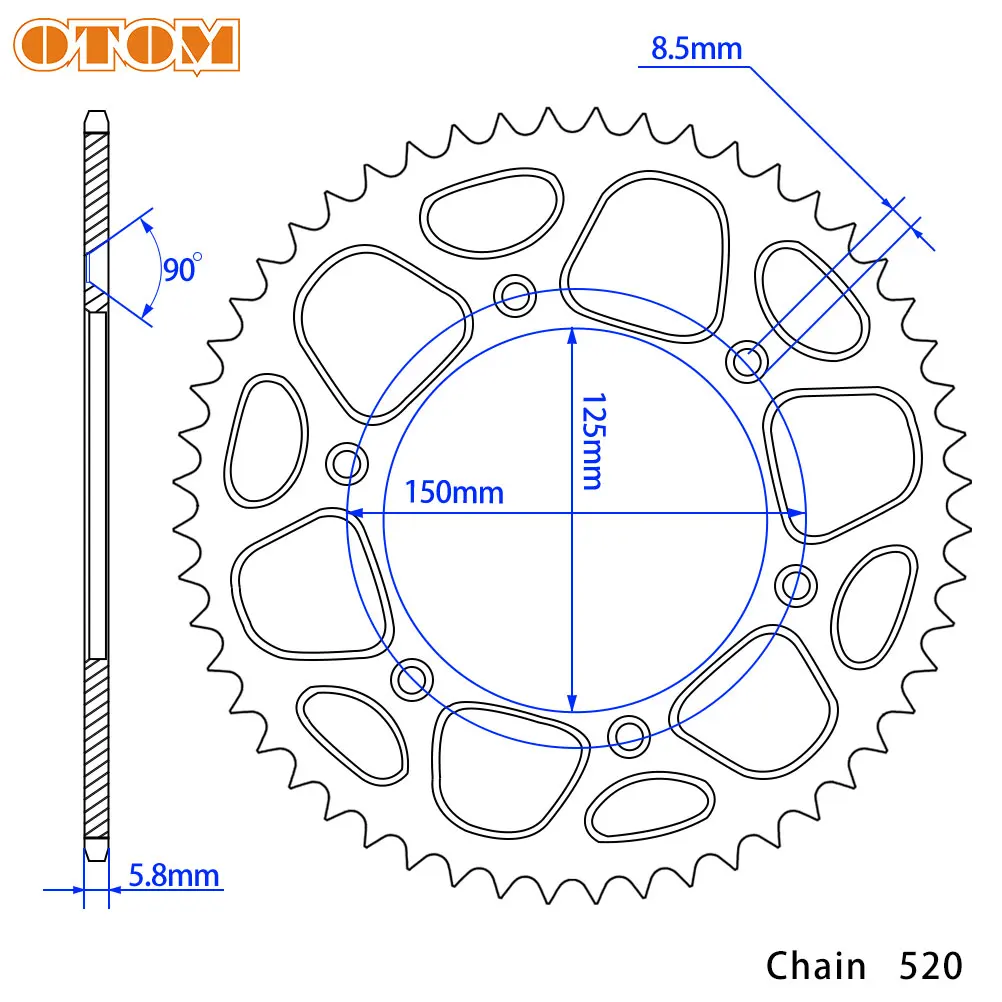 Задняя цепная Звездочка OTOM 52T с винтами для цепи мотоцикла KTM EXC EXCF SX XCW XCFW MXC HUSQVARNA FC FE FX 250 350 450 530