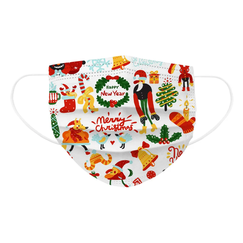 50 шт., разноцветные рождественские маски, детские маски с рождественским принтом, маски с защитой от пыли, Висячие маски с принтом для ушей, mascarillas40 *