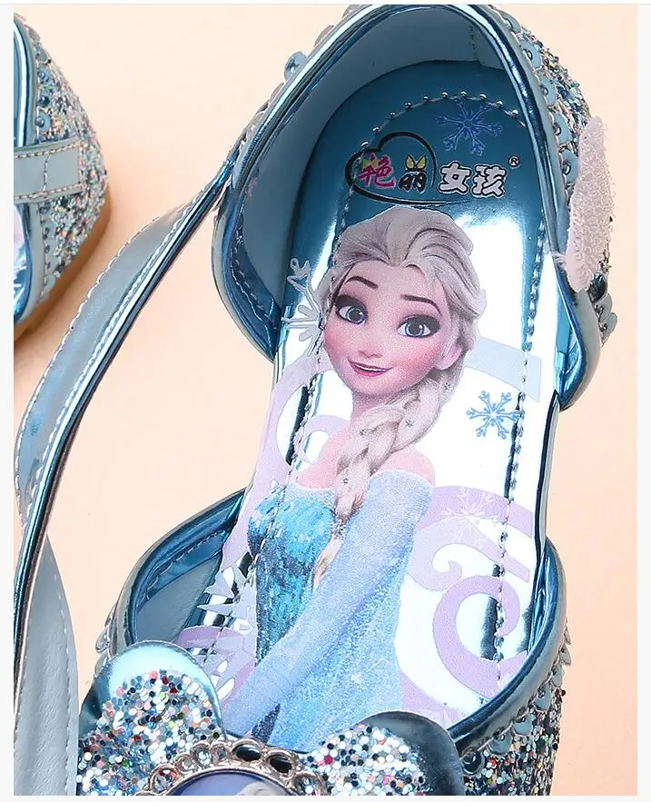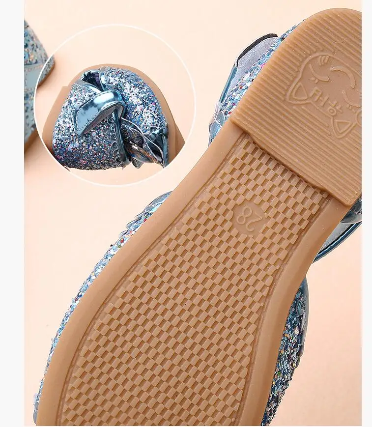 Детские кожаные туфли принцессы для девочек повседневные блестящие на высоком