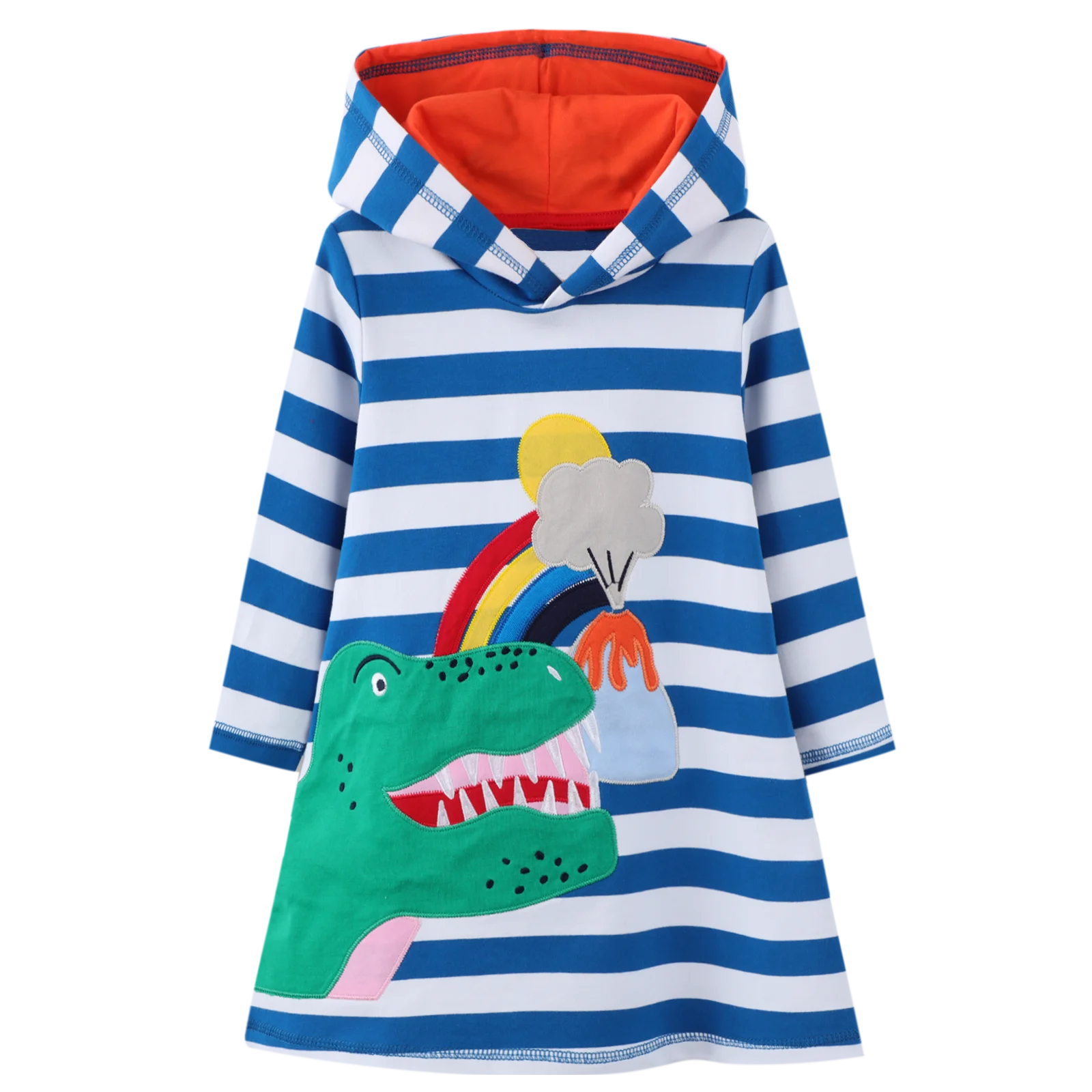 Платье с капюшоном для девочек; Осенне-зимние детские платья в полоску; Одежда для девочек; Толстовки с капюшоном для маленьких девочек; Платье принцессы; Одежда для малышей