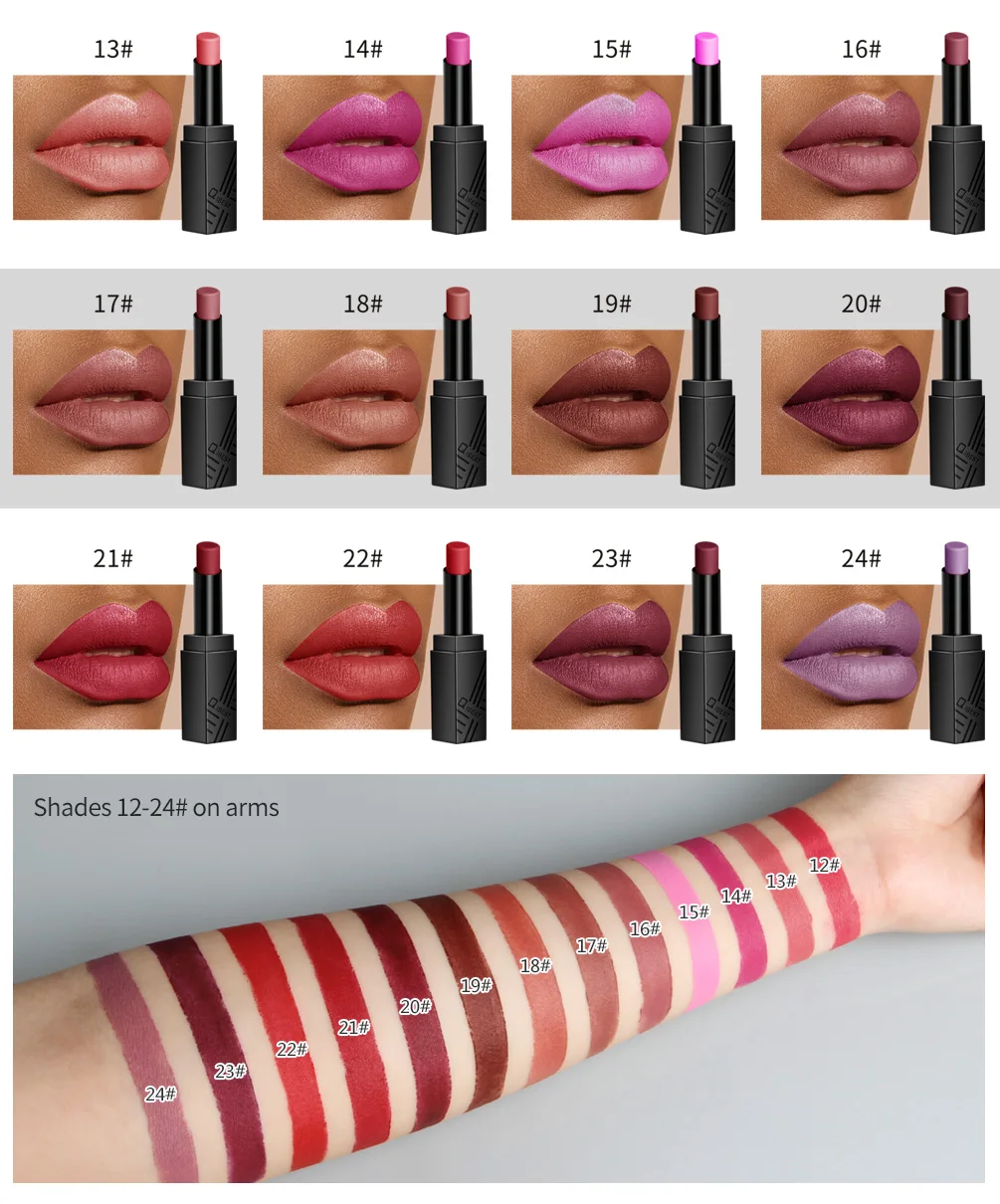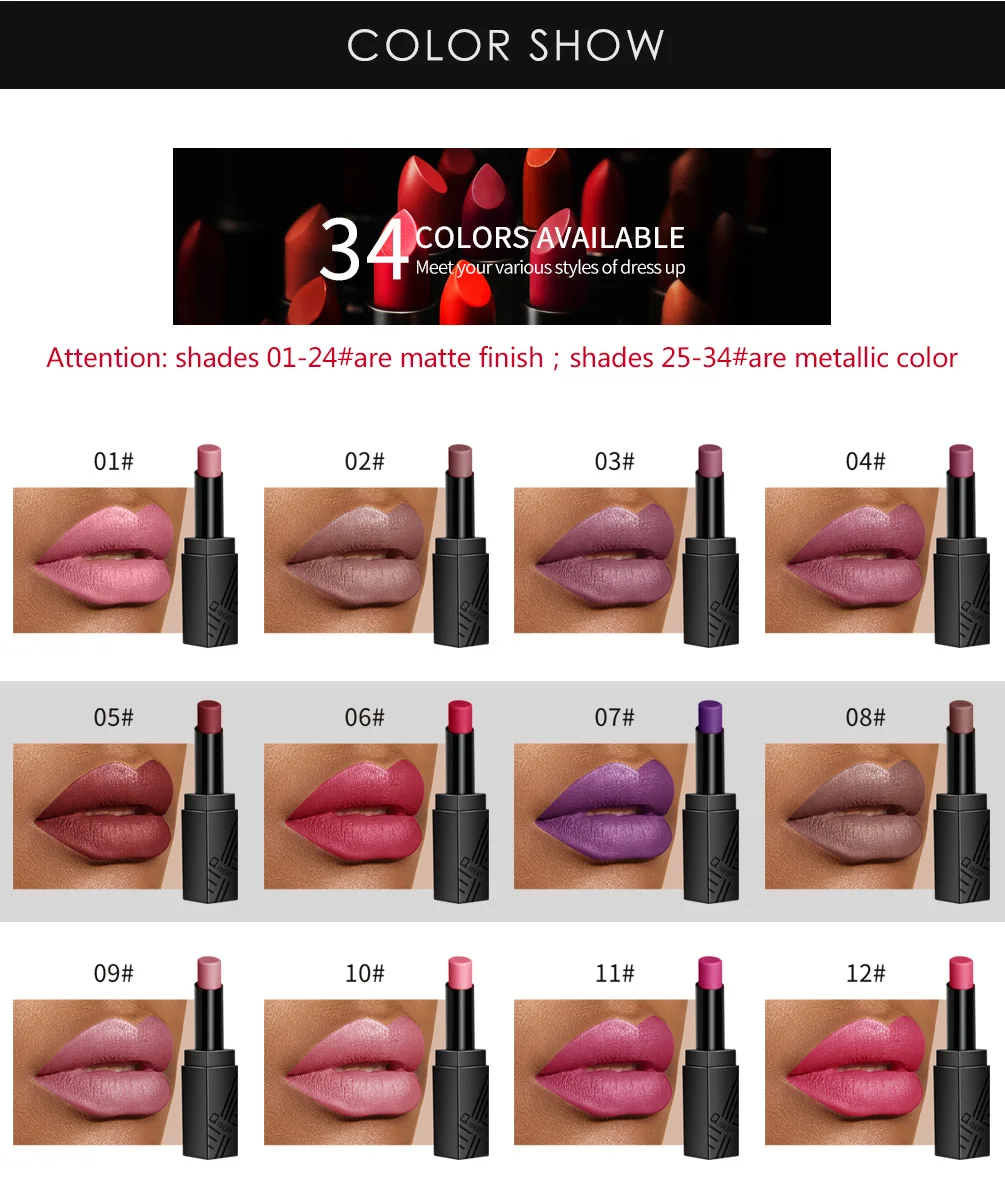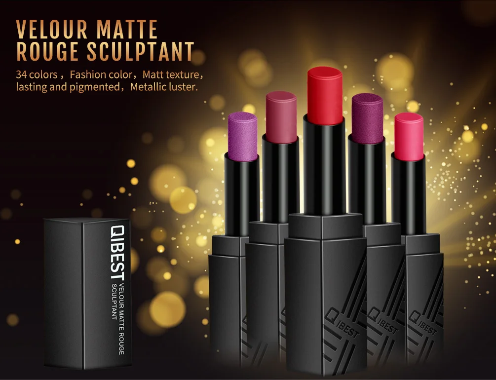QiBest 34 Цвета матовая губная помада черного цвета водостойкая долговечная Сексуальная перламутровая увлажняющая косметика для губ TSLM2