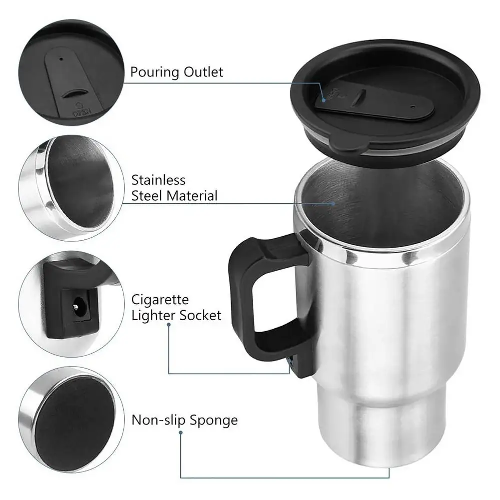1. Его можно вставить в прикуриватель для путешествий объемом около 450 мл, который очень подходит для использования во время путешествий с семьей, а также есть хороший Электрический термос, подходит для походов в поход, чтобы сохранить кофе в тепле. Электрический чайник, работающий от прикуривателя постоянного тока 12 В, разъем питания, подходит для 12 В электромобиля, можно пить горячую воду, кофе, молоко, чай в дороге.