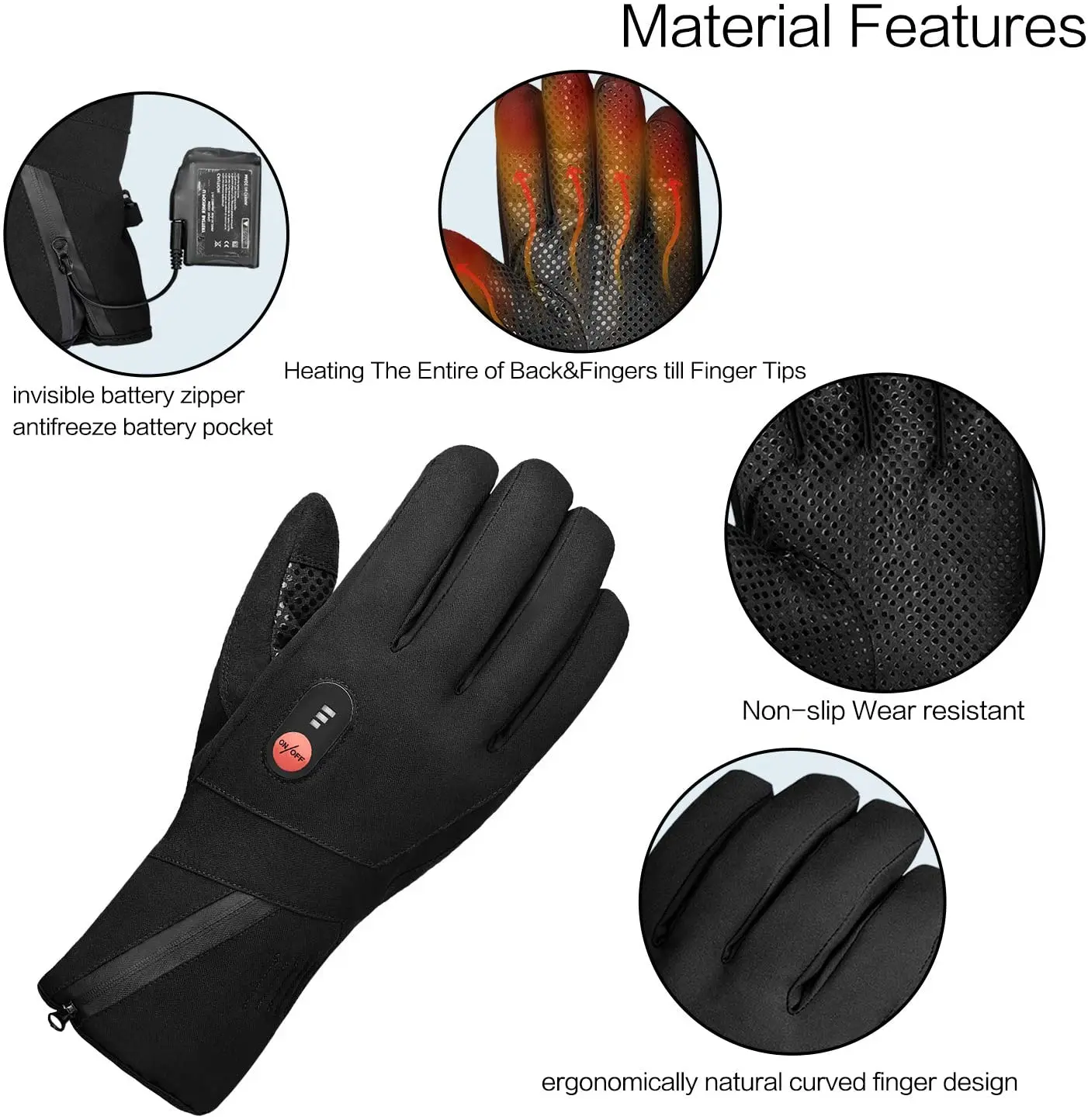 Зимние теплые перчатки с подогревом от батареи 2020, 3 сменные температурные регулировочные нагревательные перчатки для катания на лыжах, мотоциклистов, рыбалки, прогулок