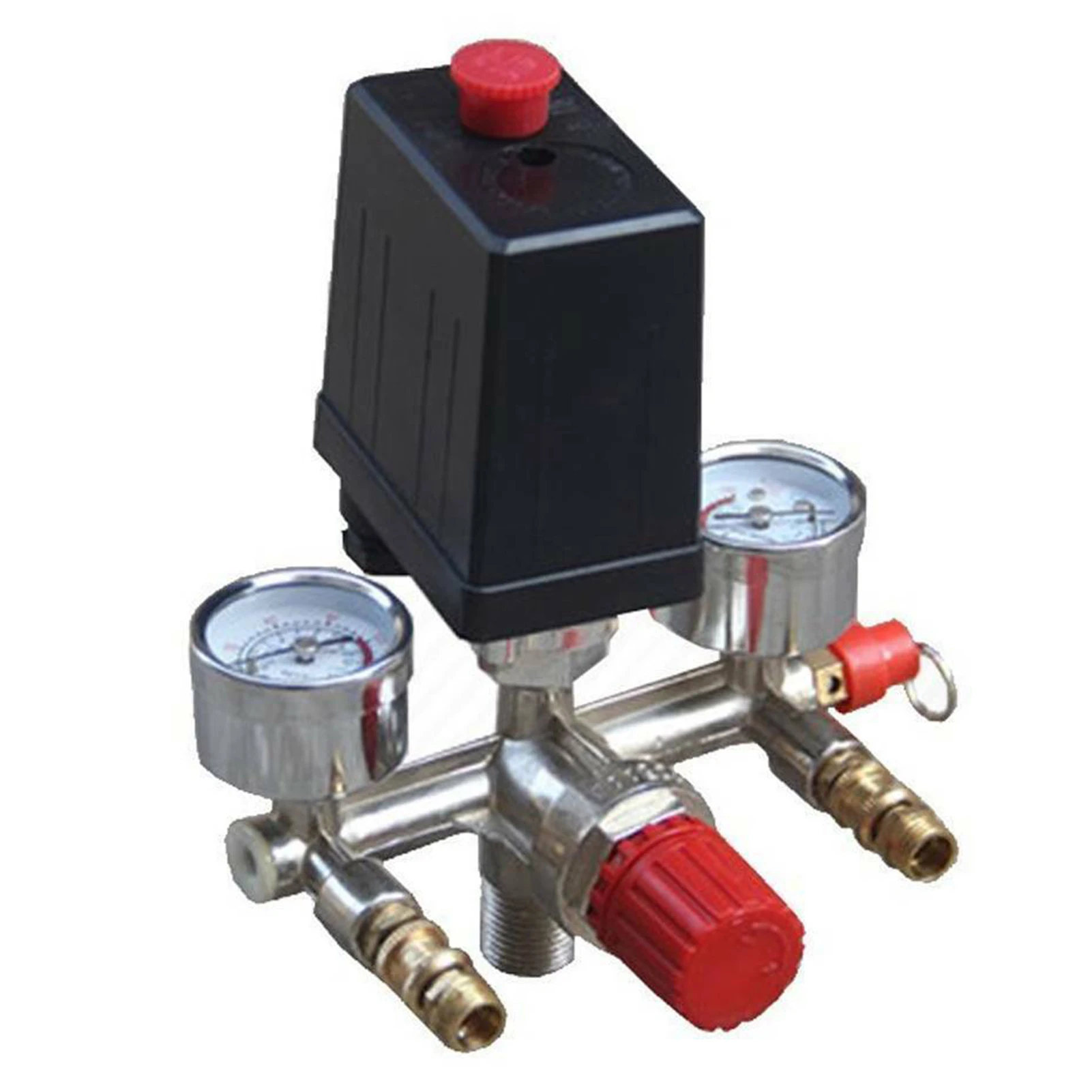 230V pressure switch air valve, metal port, durable and wear-resistant, lastics hand shank, easy to operation and switch, each port have individual barometer, real time display the pressure change, safe and easy to control.