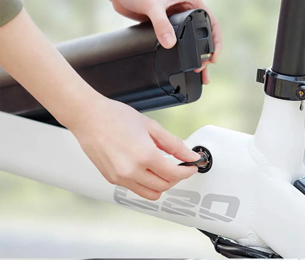 18650 литиевая батарея, мощность 10 Ач обеспечивает длительный выход энергии до 80 км электрический мопед пробег. 2,5 кг батарейный блок идеально спрятан в дальний свет кадра. Выдвижная конструкция является гибкой для зарядки.