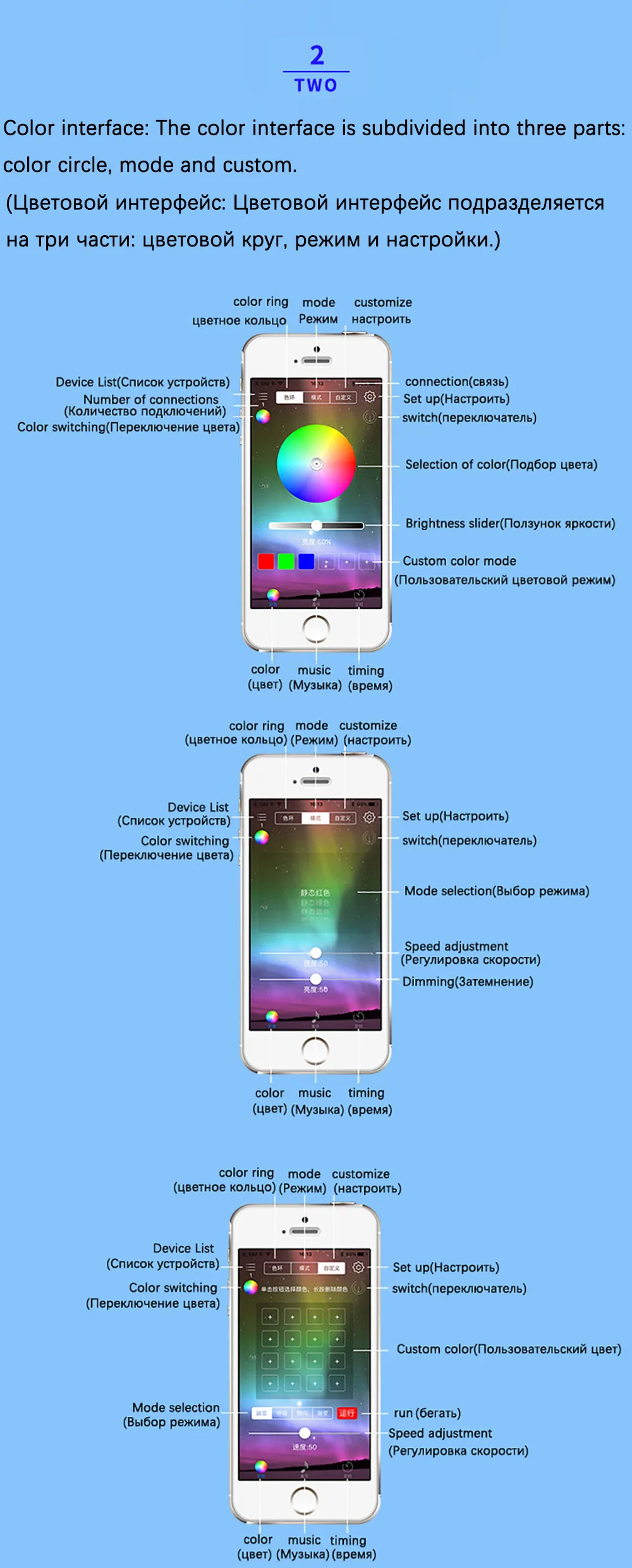 Пожалуйста, отсканируйте QD код 1. Сканируя QD код в руководстве пользователя или в поисках «LED Настольная лампа», используйте свой мобильный телефон, чтобы загрузить приложение «LED Настольная лампа» или приложение «LED лампа», В App Store iPhone или Google Play Store. 2. После того, как приложение успешно загружено, вам нужно сначала включить функцию Bluetooth на телефоне, затем вставить светильник, а затем включить приложение. Ваше приложение будет автоматически соединять светильник с полоской, и вы сможете управлять им. Если вы не можете подключиться, как устранить неполадки: (1) Проверьте, является ли индикатор нормальным (2) Проверьте, включен ли Bluetooth (3) Проверьте, есть ли другие мобильные телефоны, подключенные Bluetooth 4,0 поддерживает только одно-много подключений и не поддерживает несколько мобильных телефонов для подключения нескольких устройств (4) Проверьте, есть ли настройки Bluetooth приложения уже на устройстве, выйти из приложения после подключения и повторно открыть приложение будет автоматически подключено (5) операция Нормальная и не может быть подключена, пожалуйста, выйти из приложения и снова открыть его (6) выйдите из приложения, перезагрузите телефон, включите светильник и снова откройте приложение, оба будут автоматически подключены.