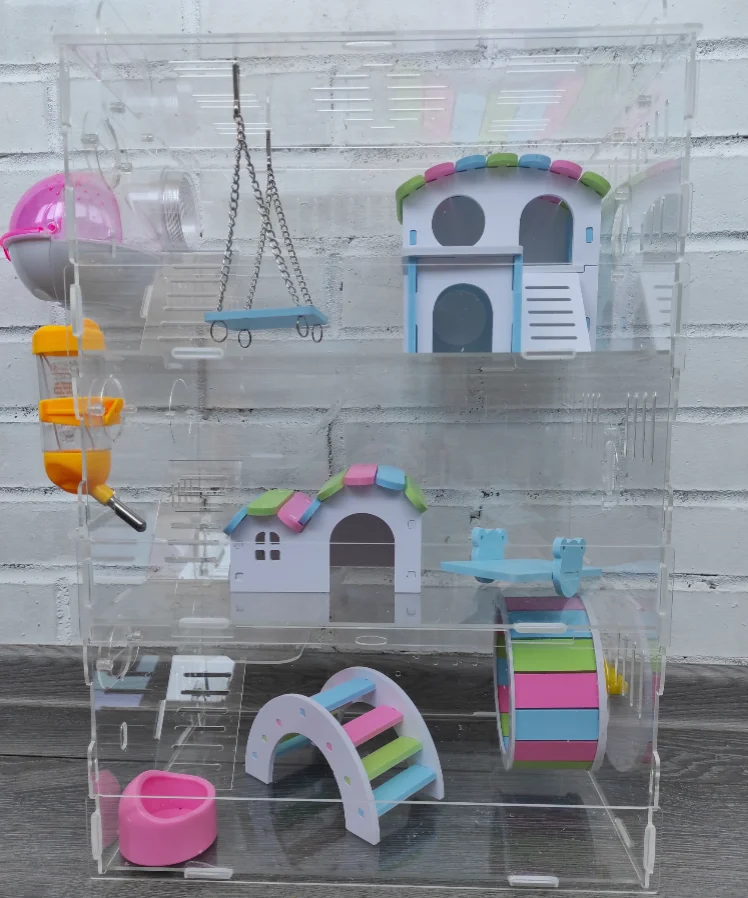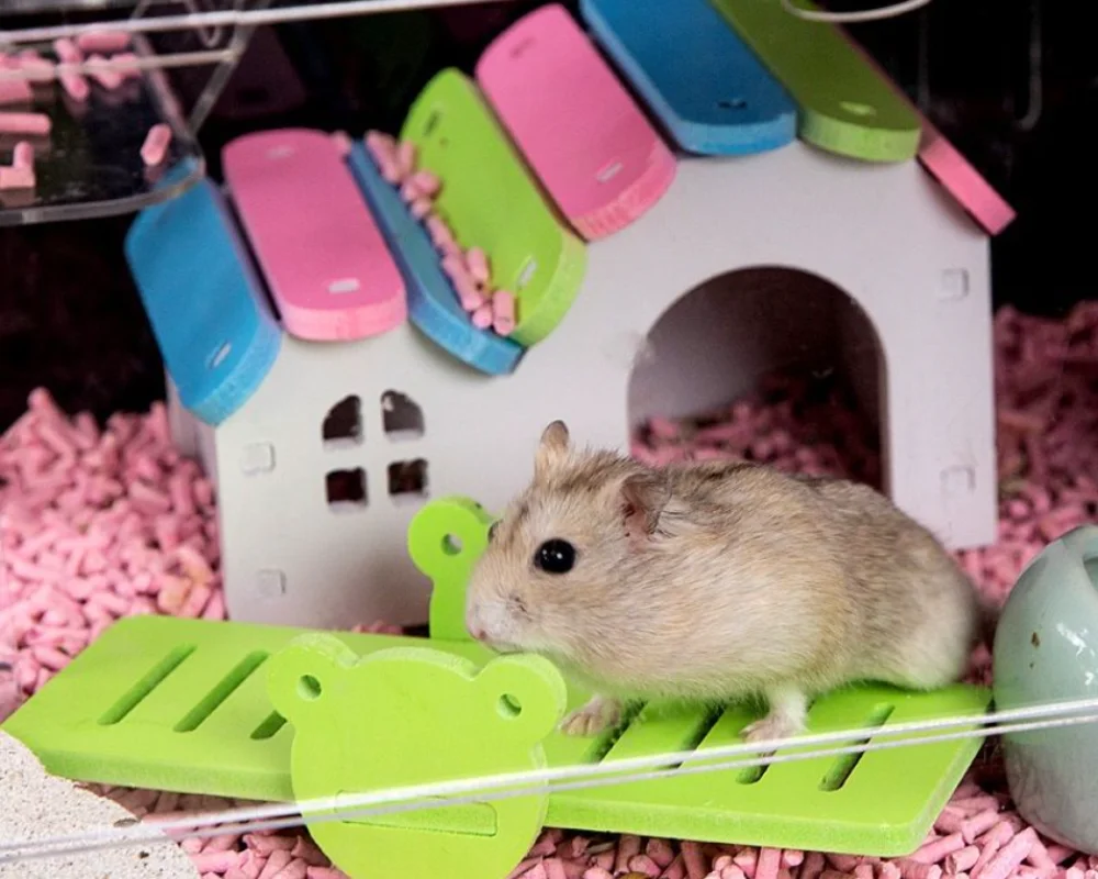 Внутри есть лесенка между этажами и еще одна чтобы зверек мог забраться в шар-батискаф