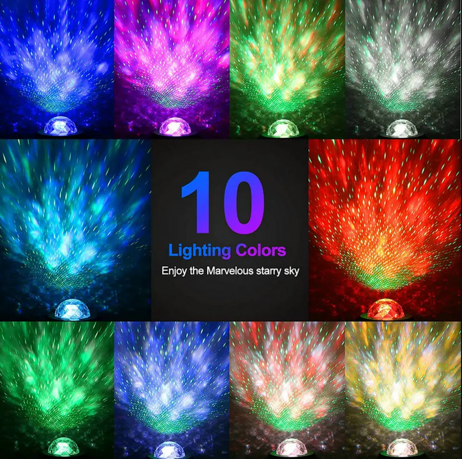 Отличается от других изделий только одним цветом. Звездный проектор с 10 цветовыми комбинациями для туманности облака и 54 световыми эффектами для звездных огней. В туманности также есть переключаемая Красная Галактика. Вы можете отрегулировать его скорость, цвета и яркость для создания комнаты галактики вашей мечты (запатентованная защита)