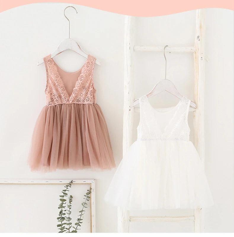Кружевное свадебное платье с открытой спиной для девочек; Летняя юбка без рукавов; Детские вечерние бальные платья принцессы; Платье-пачка; Пляжная одежда