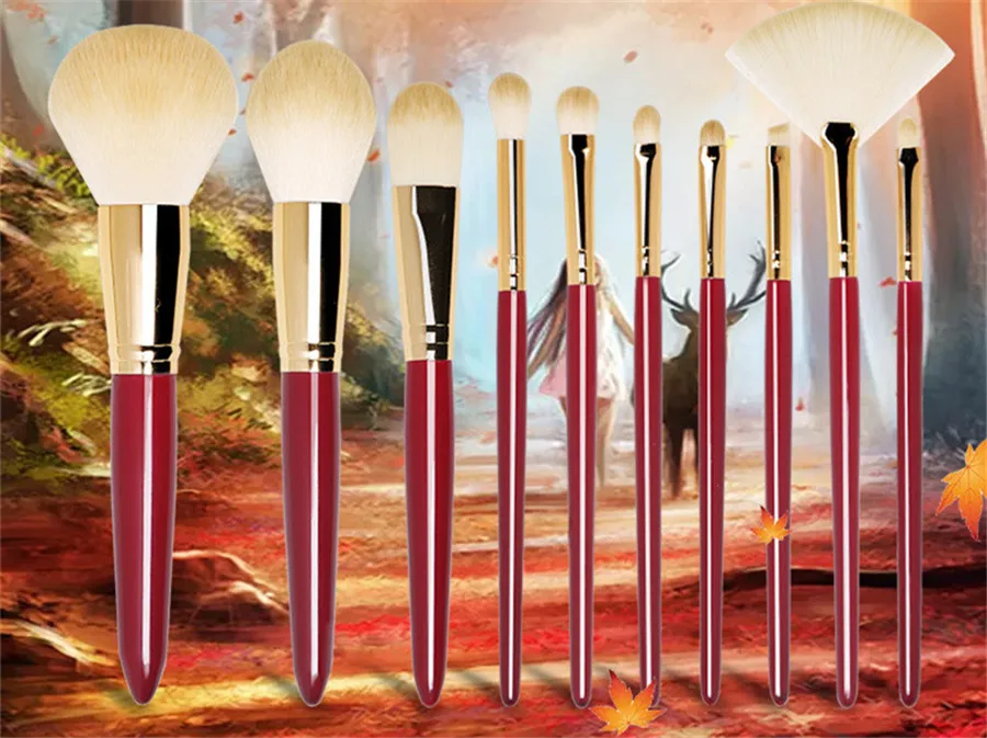 10 шт. кленовый лист Осенняя Высококачественная деревянная ручка для выпечки лакированный макияж Косметические кисти набор пудры Румяна E817
