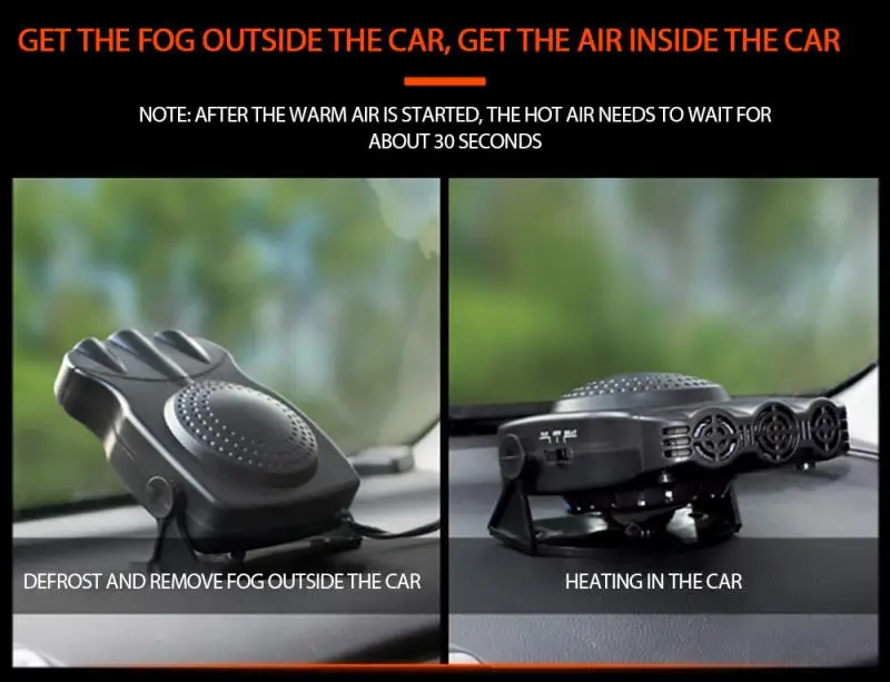 [Нагревание и охлаждение]-всего за 5 секунд автомобильный обогреватель может быстро удалить лобовое стекло или мороз из автомобиля, нагревая воздух. Его также можно использовать в качестве автомобильного вентилятора для охлаждения вашего автомобиля летом. Позвольте вам насладиться прохладным летом и теплом зимы.