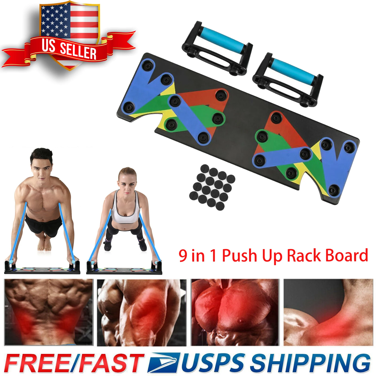 Различные цвета-кодовые поджимная доска цели специфика мышц (синий-грудь, красный-плечи, желтый-назад, и зеленый-трицепс)