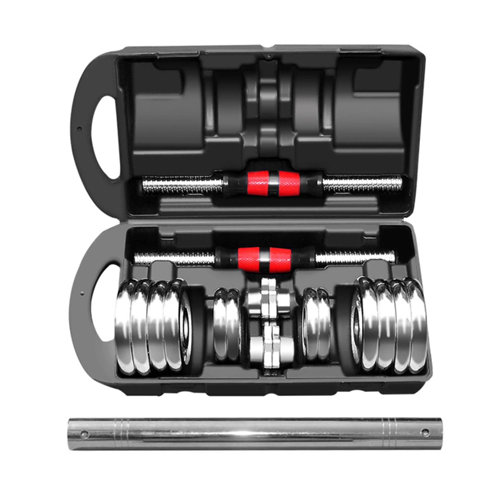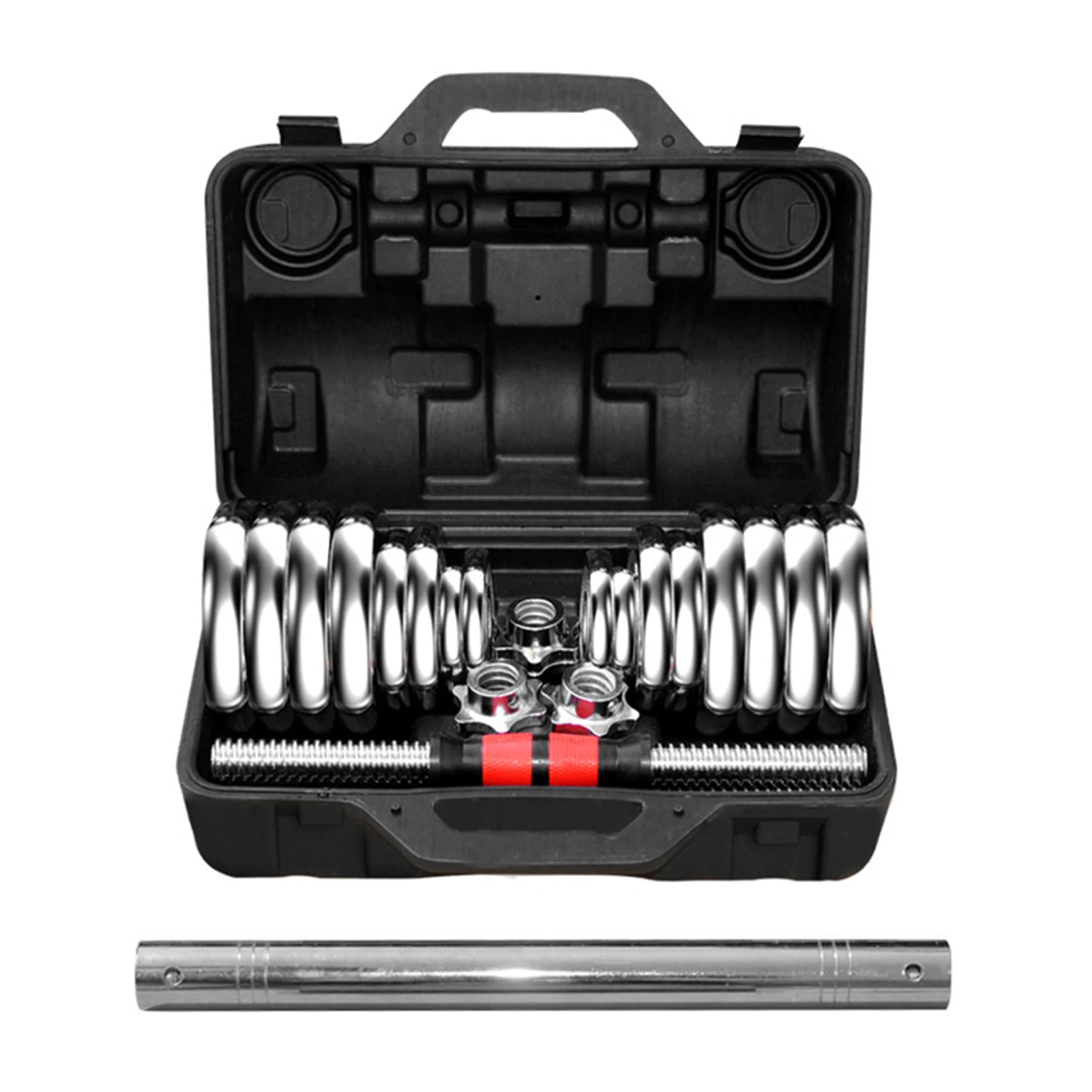 Просто вставьте две гантели вместе с соединительной трубкой, чтобы сформировать штангу.
