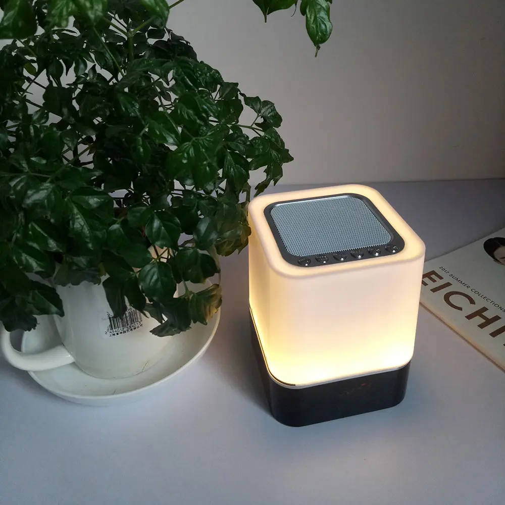 Bluetooth-динамик может быть сенсорным управлением Ночной светильник, bluetooth-динамик, mp3-плеер, цифровой будильник и затемняемый Ночной светильник. 7 цветов на выбор, светильник меняет цвет с учетом разного объема и ритма.