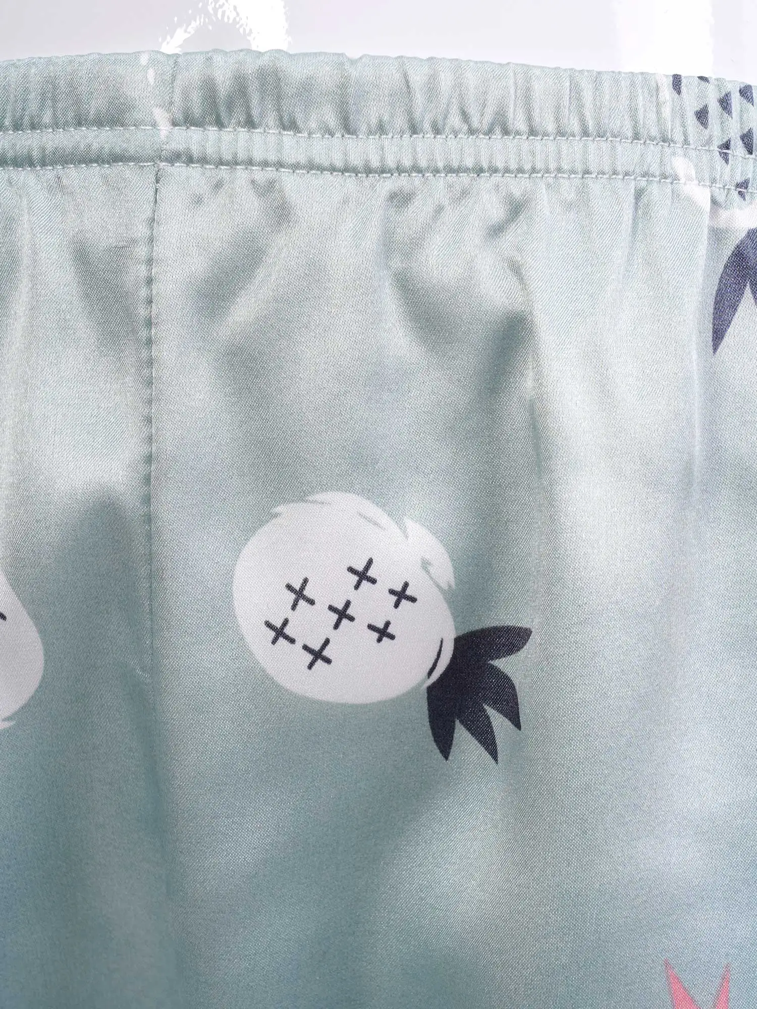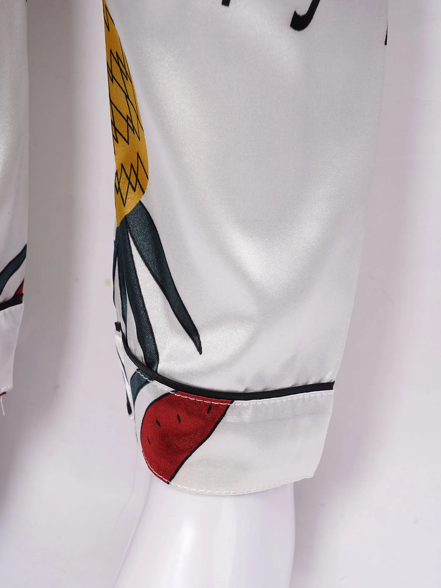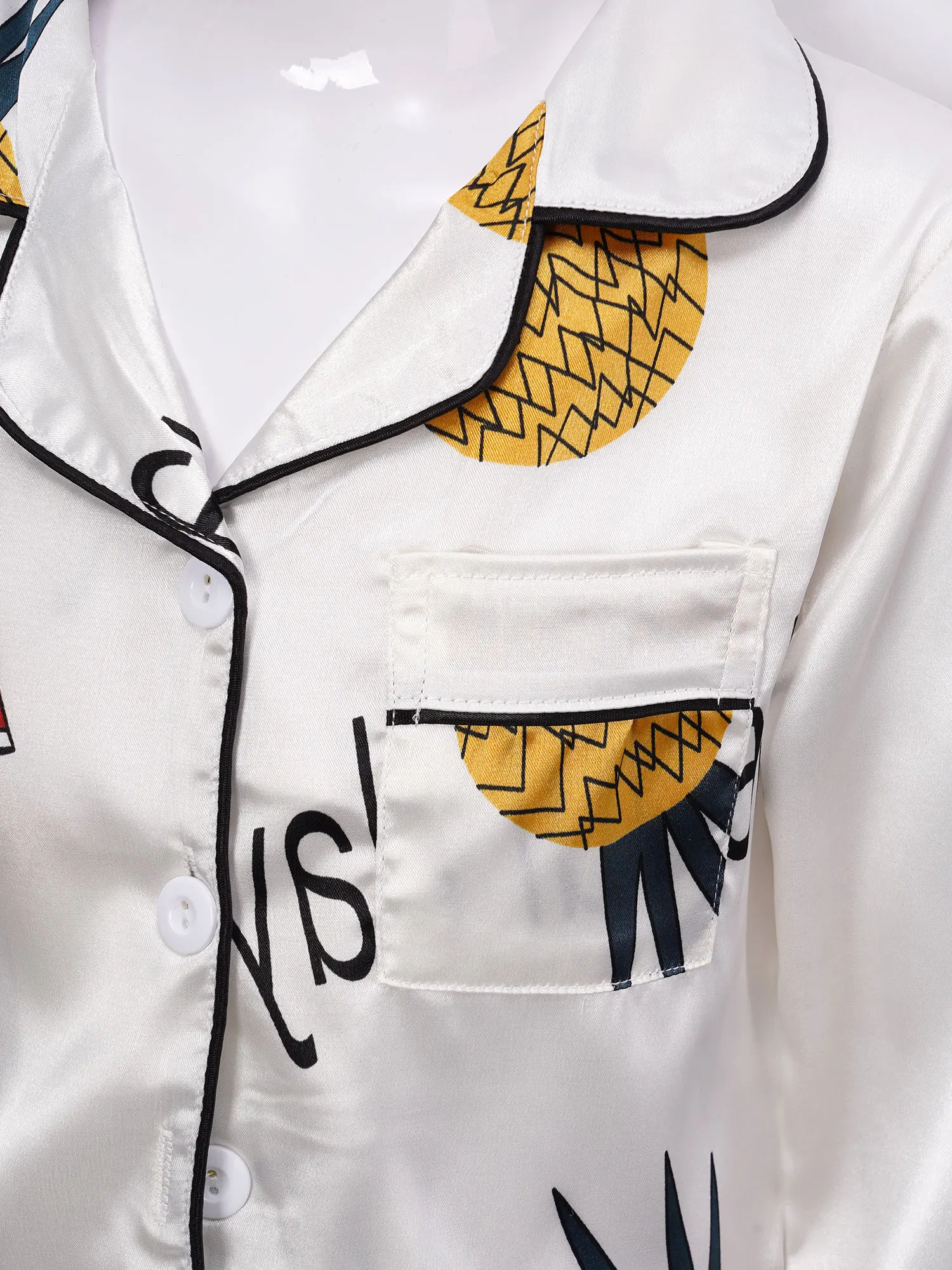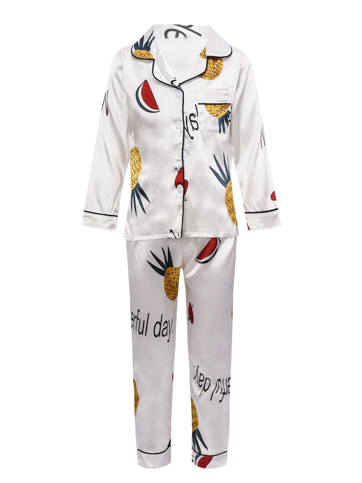 Детская осенняя шелковистая пижама из искусственного атласа с принтом ананаса для девочек, 2 предмета, ночная рубашка, Пижамный костюм с отложным воротником, длинными рукавами, карманами и пуговицами, комплект со штанами с эластичным поясом, #8-18
