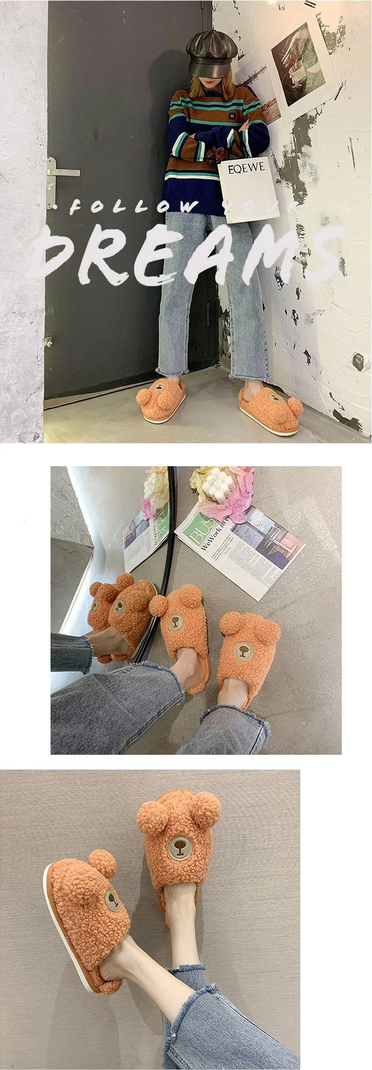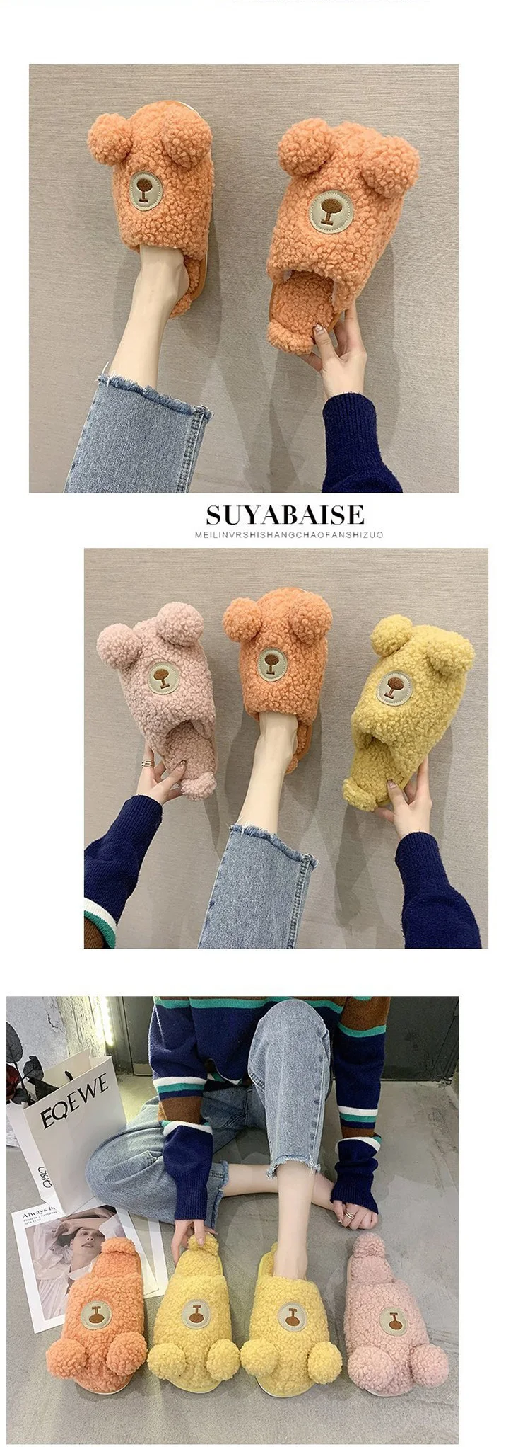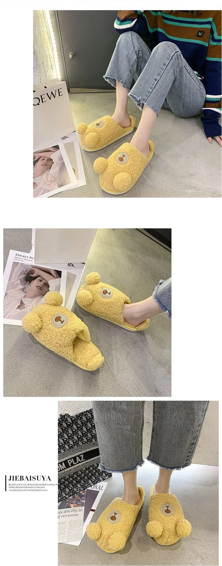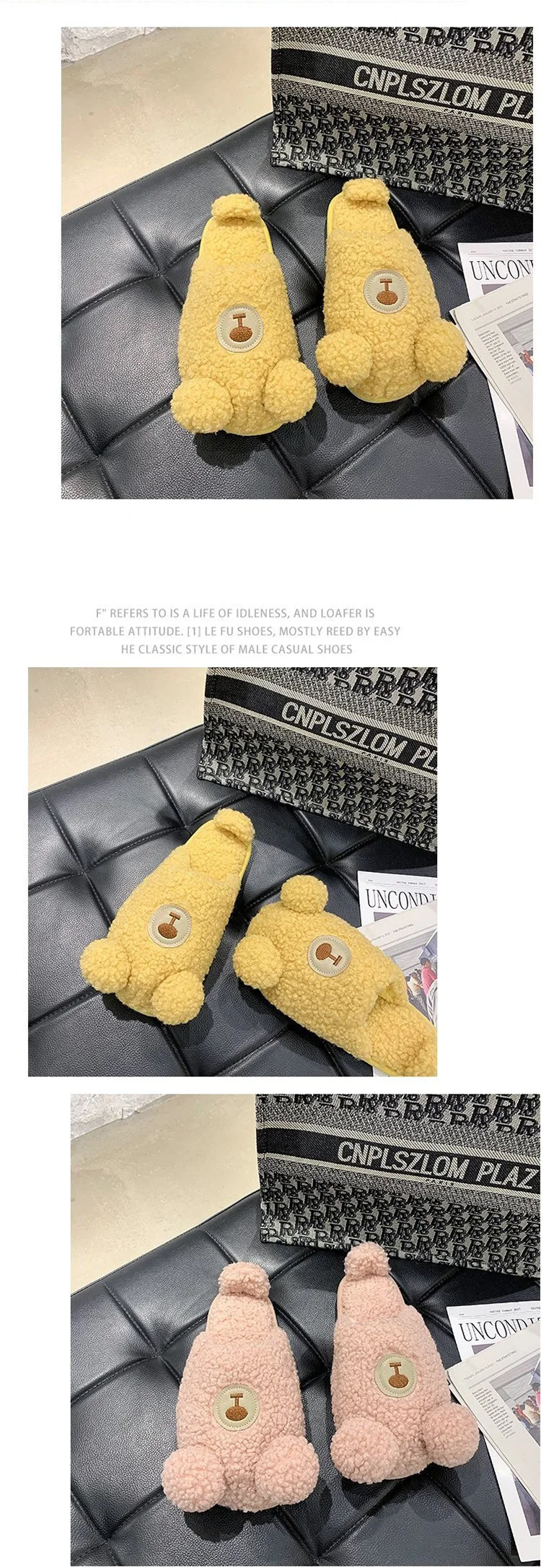 1. Милые пушистые тапочки с рисунком медведя; Милые, теплые и