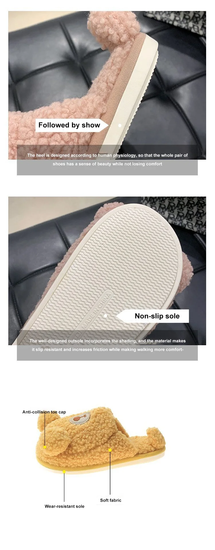 2. Плюшевая ткань, нескользящая резиновая подошва