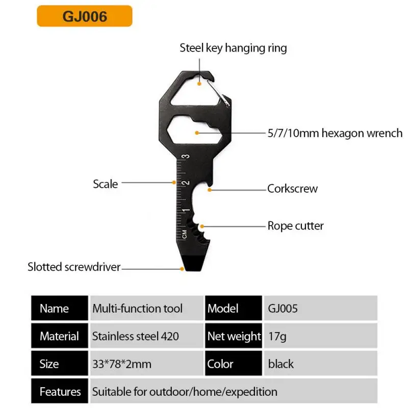 Твердый кусок 420 нержавеющей стали с более чем 10 + функций инструмента, которые каждый обеспечивает несколько применений. Долговечность Geekey и ультра компактный дизайн позволяют ему быть легким компаньоном для вашего ежедневного ношения.