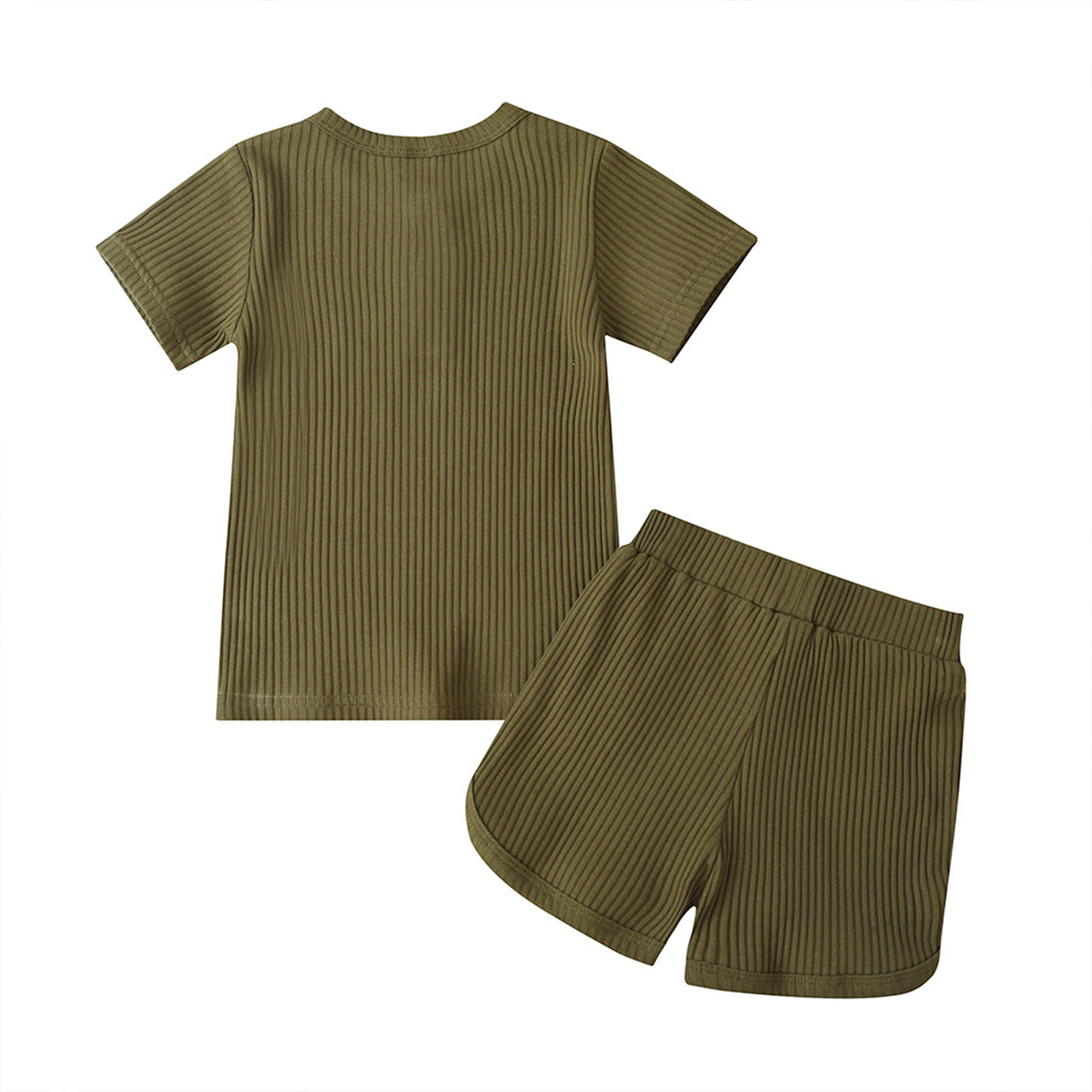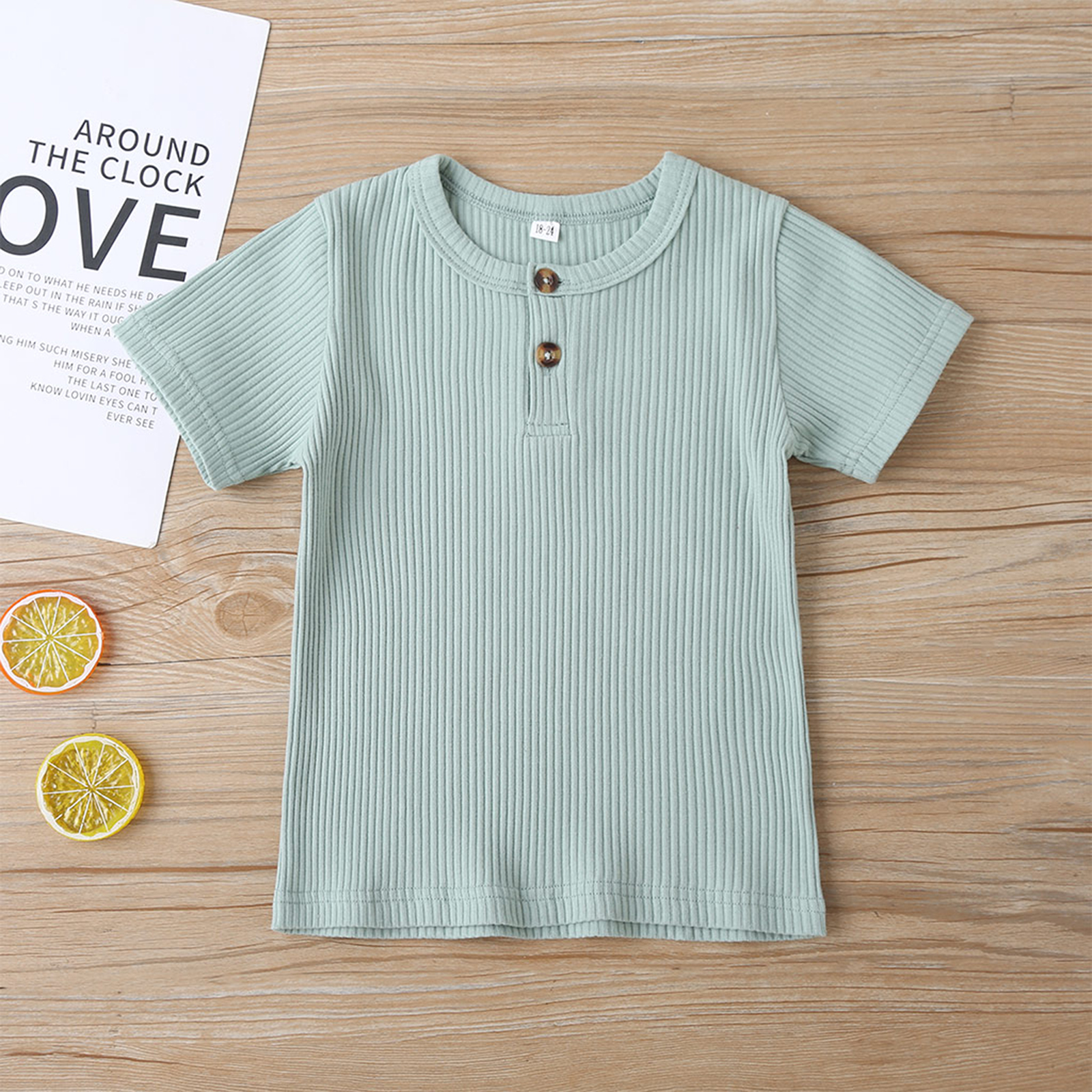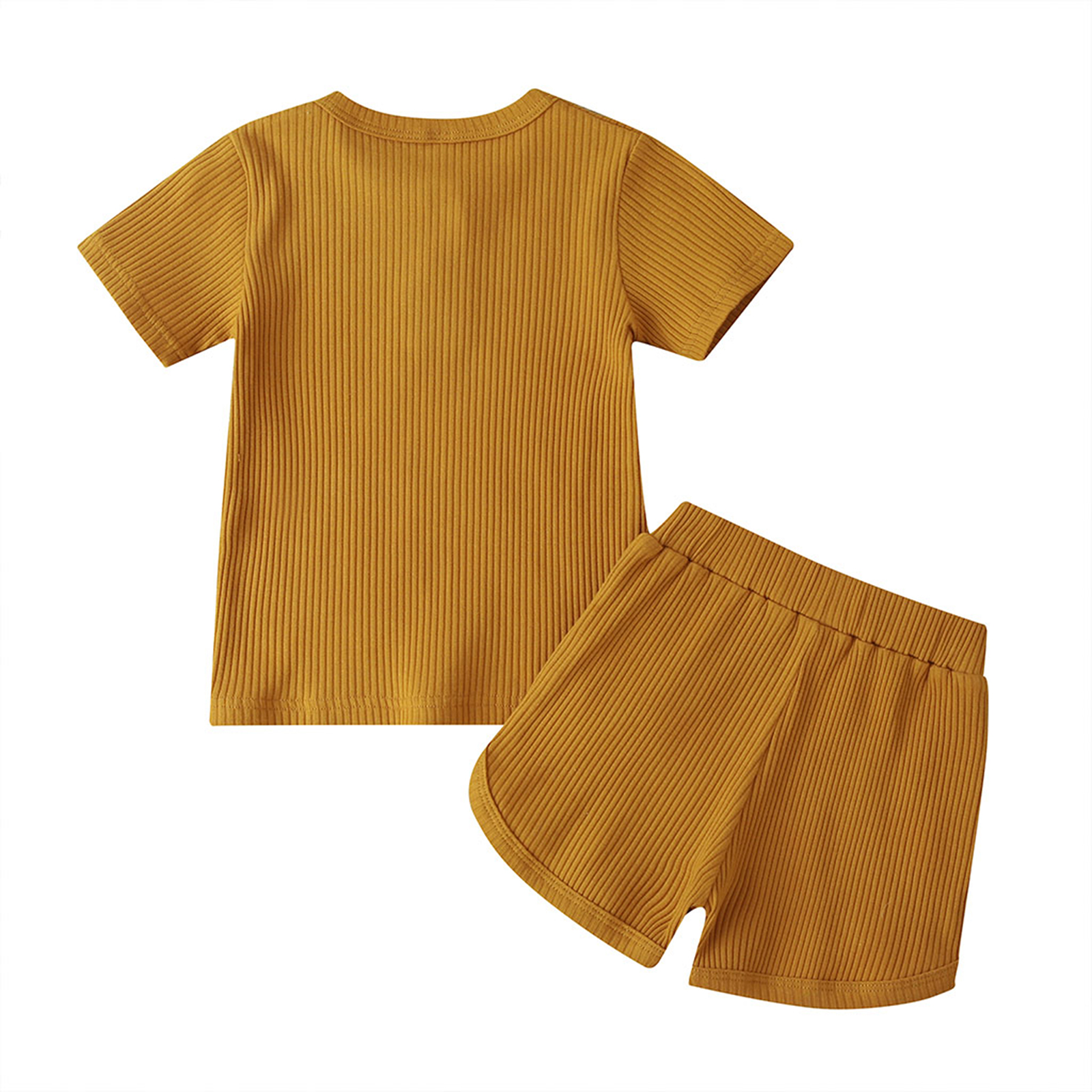 Детский однотонный комплект, топ на пуговицах с коротким рукавом и шорты для мальчиков и девочек, костюмы из 2 предметов