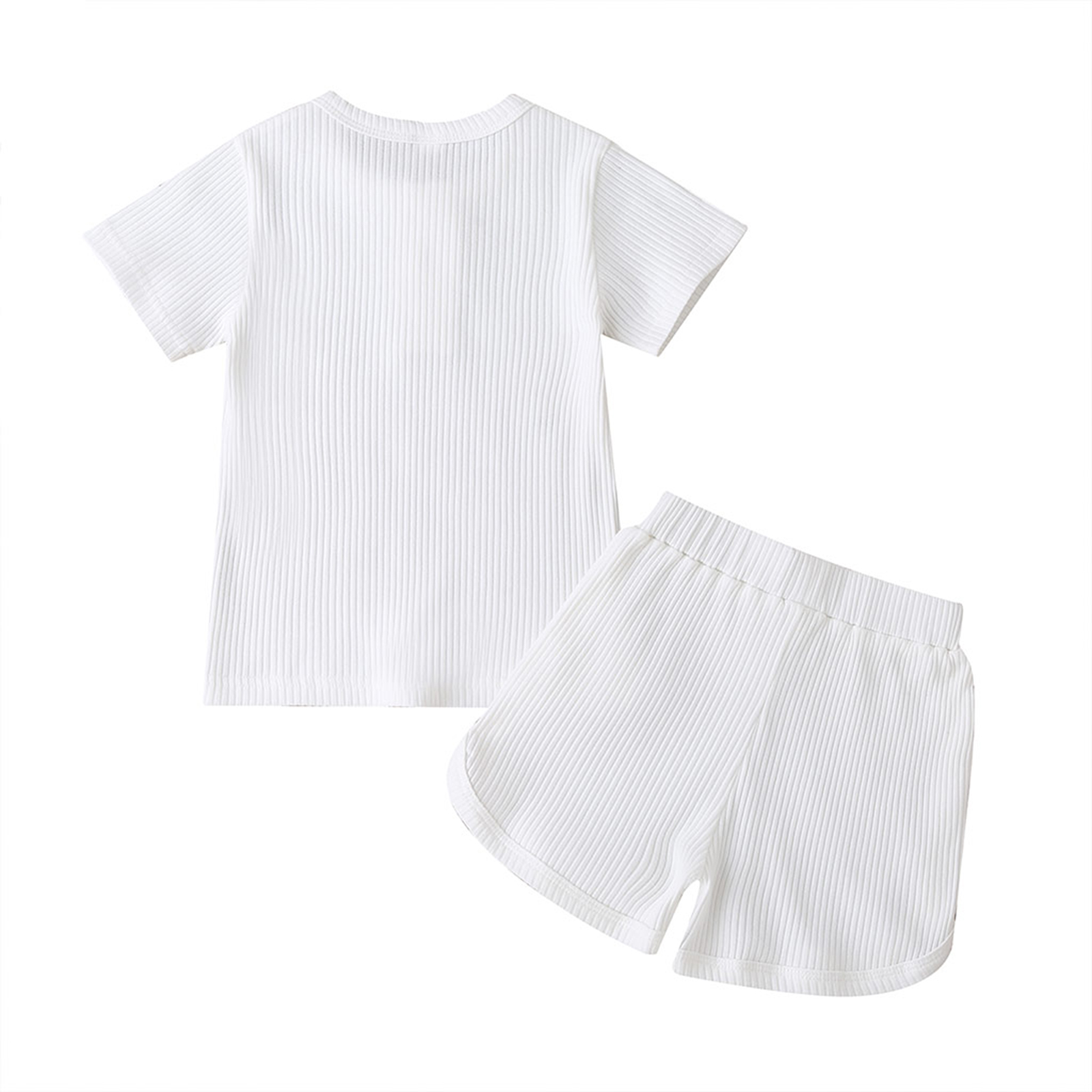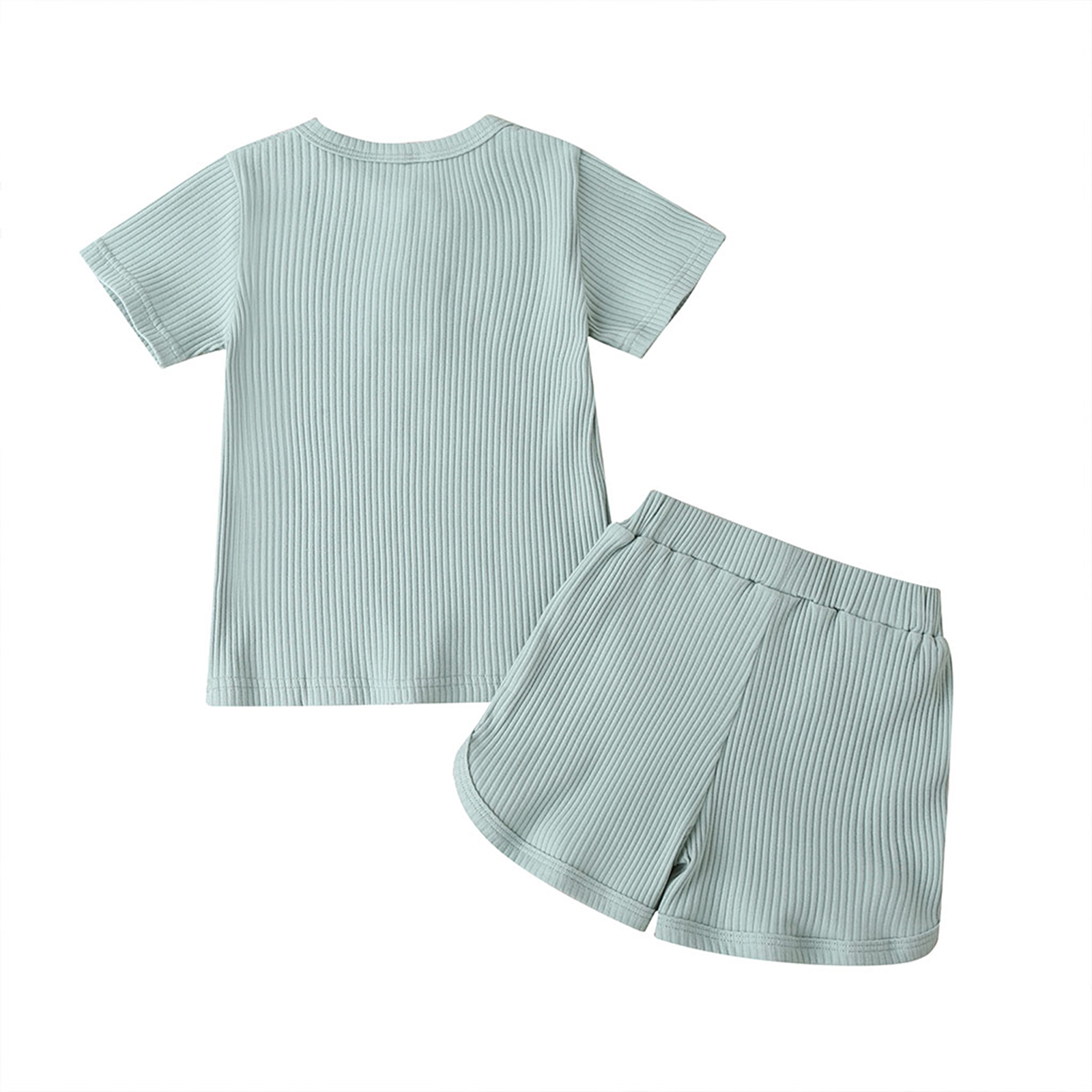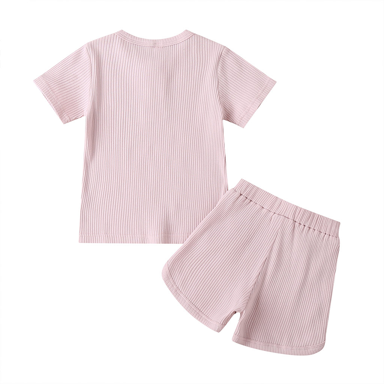 Детский однотонный комплект, топ на пуговицах с коротким рукавом и шорты для мальчиков и девочек, костюмы из 2 предметов