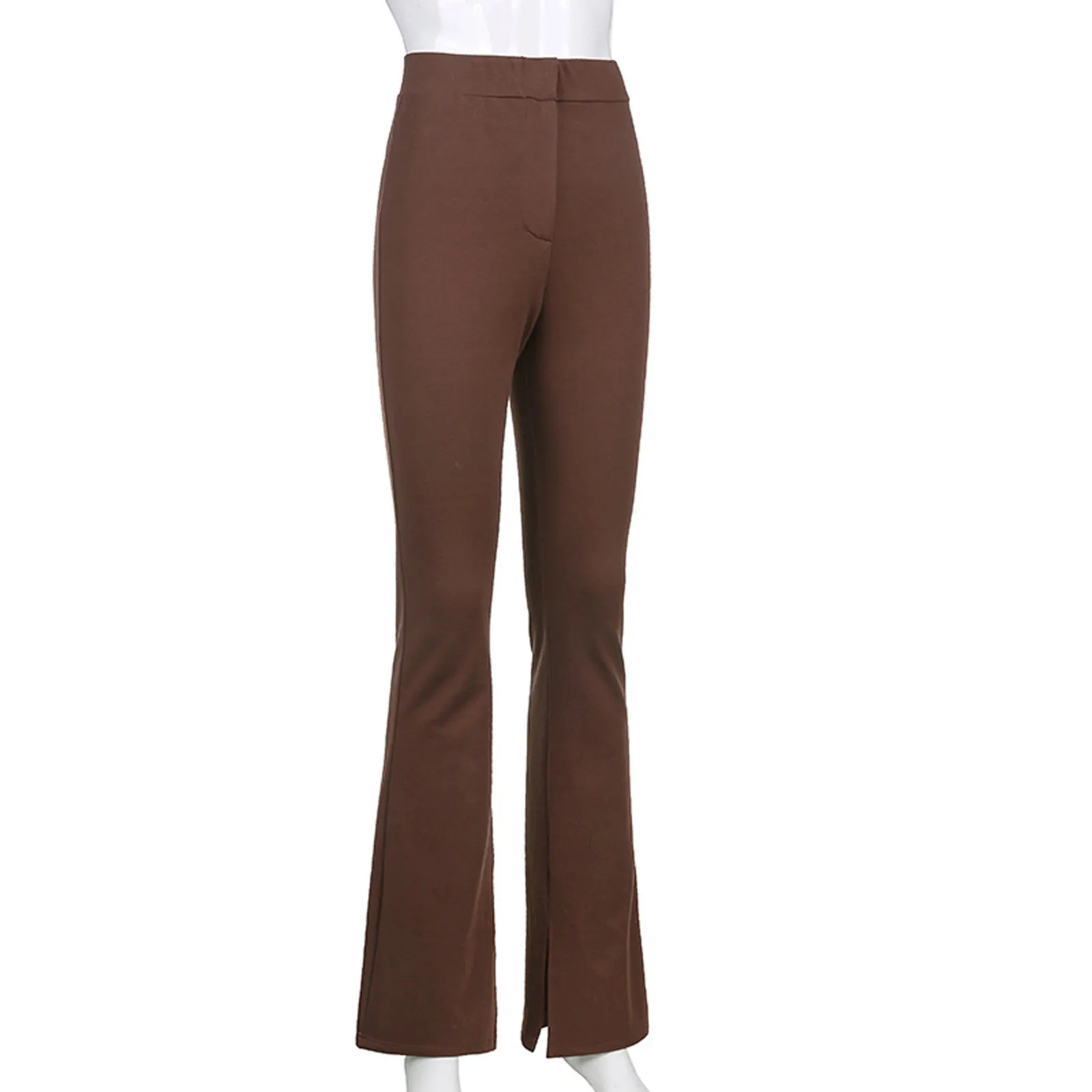 Женские повседневные однотонные облегающие брюки с разрезом и высокой талией